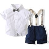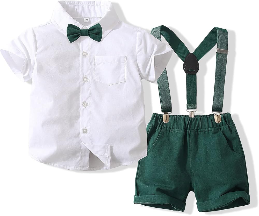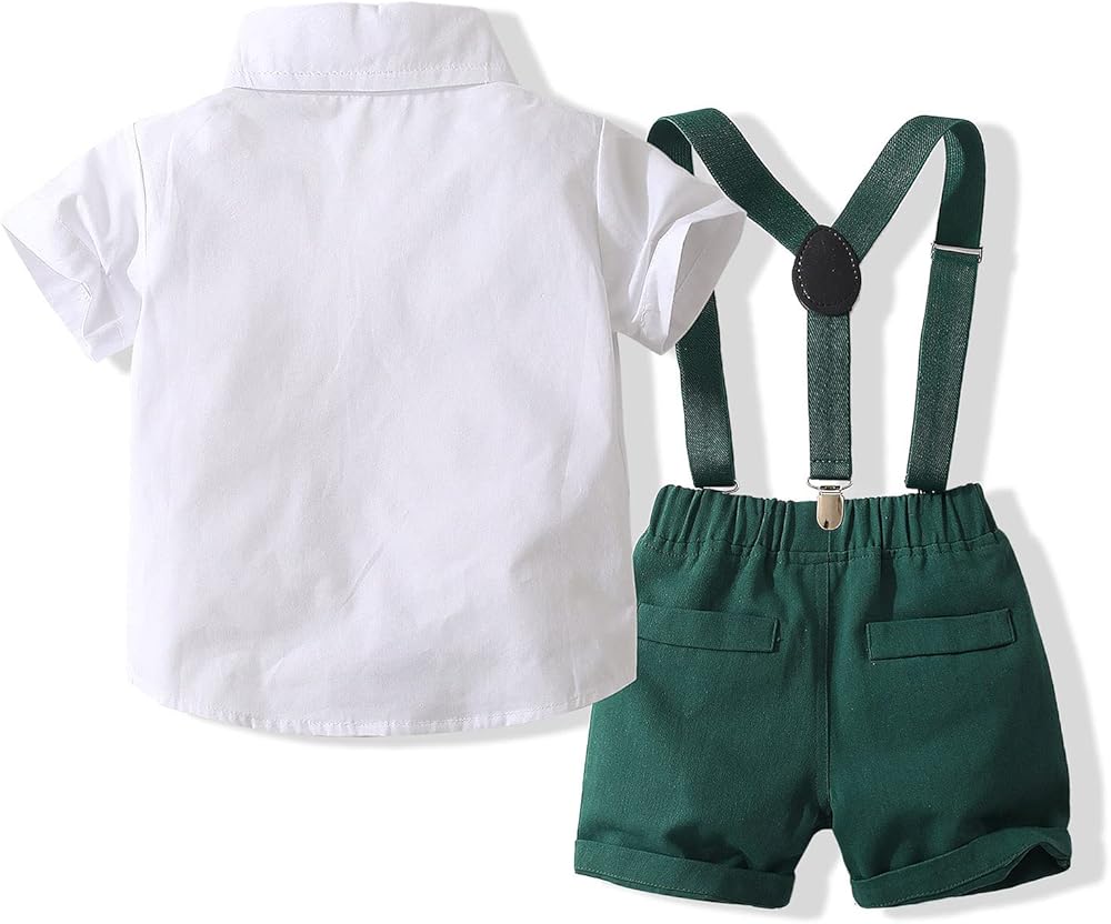- تصميم أنيق: قميص كلاسيكي على شكل ربطة عنق مع شورت حمالات أنيق، مما يجعل طفلك الصغير الأكثر أناقة في أي مناسبة.