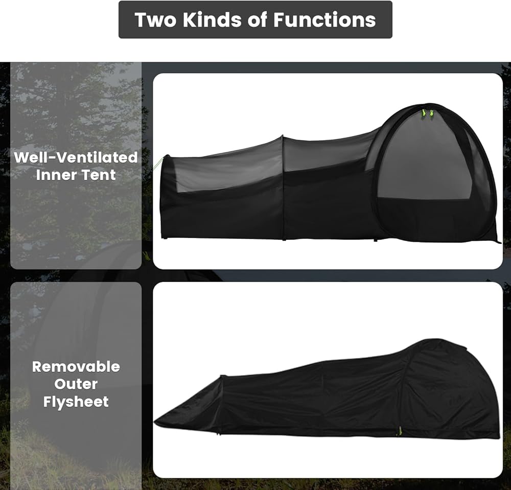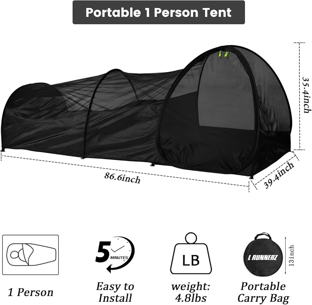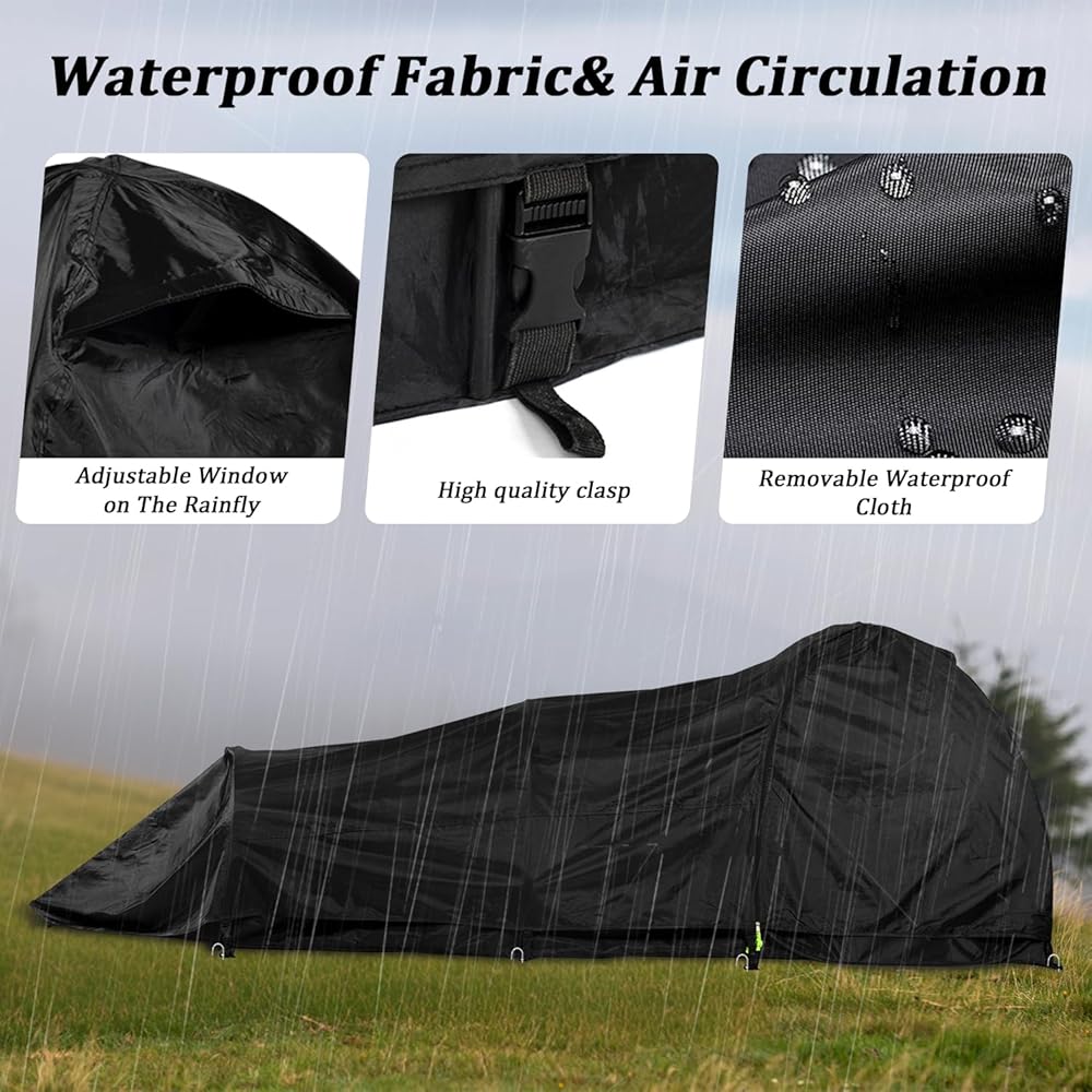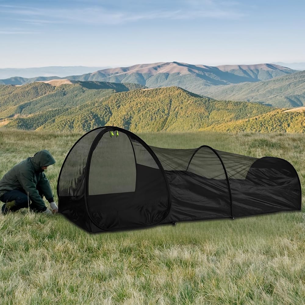 متانة فائقة - تم تصميم خيمتنا المكونة من شخص واحد بتفانٍ لا يتزعزع للجودة، لتلبية متطلبات الأماكن الخارجية الرائعة. تضمن الشبكة عالية الكثافة طول العمر مع توفير الحماية المثلى ضد دخول الحشرات. يضمن هيكل الدعم القوي الاستقرار حتى في الظروف الجوية غير المتوقعة.