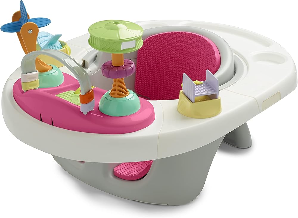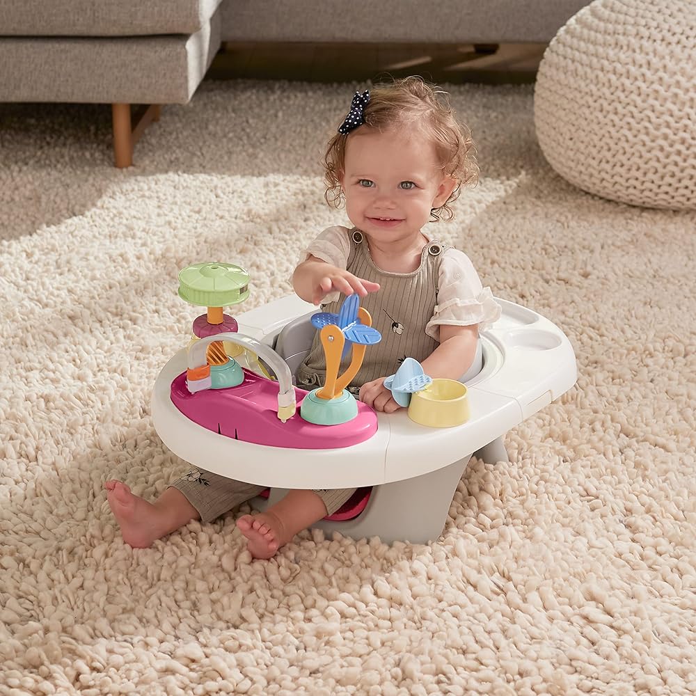 ألعاب تفاعلية: يحتوي مقعد SuperSeat 360 الصيفي 4 في 1 على ستة ألعاب جذابة متصلة بالصينية، بما في ذلك لعبتين دوارتين، وفرزتين للأشكال، وعضاضة للأسنان، وقضيب خرز.