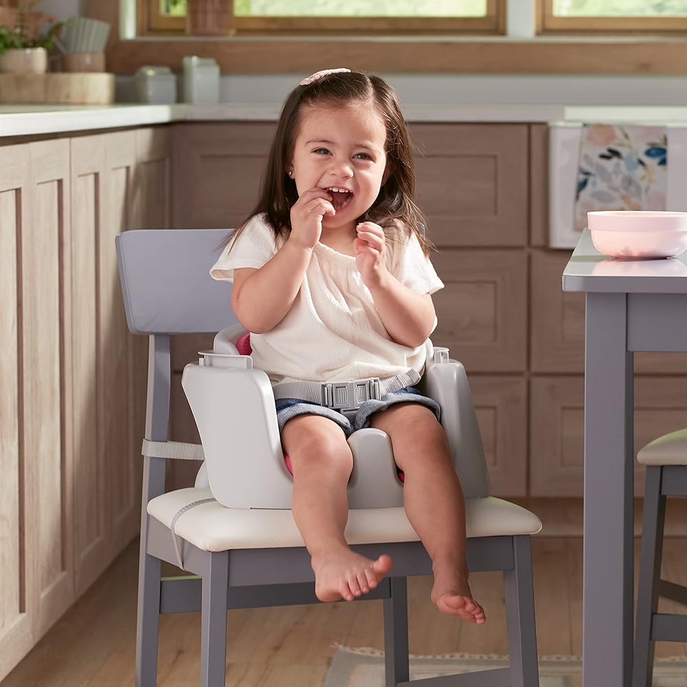 صينية دوارة: يدور مقعد الأطفال الداعم هذا مع صينية 360 درجة مع ألعاب تفاعلية على جانب واحد ومساحة للأكواب والوجبات الخفيفة على الجانب الآخر من أجل انتقال سلس من وقت اللعب إلى وقت الوجبات الخفيفة وكل شيء بينهما.