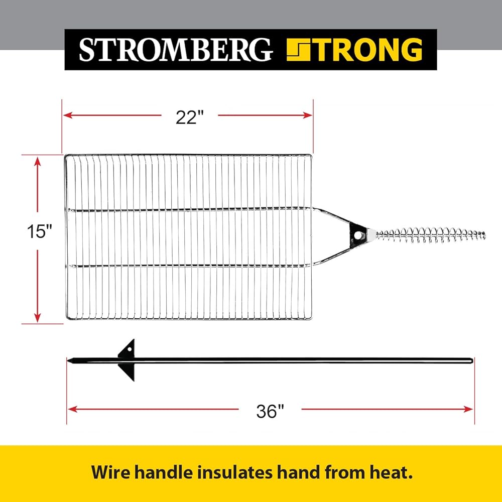 سترومبيرج كارلسون ستيك آند جريل، شواية تخييم، معدات طبخ نار مفتوحة، ملحقات حفرة النار، شبكة شواية نار المخيم، 15 بوصة × 22 بوصة مع وتد طويل 36 بوصة