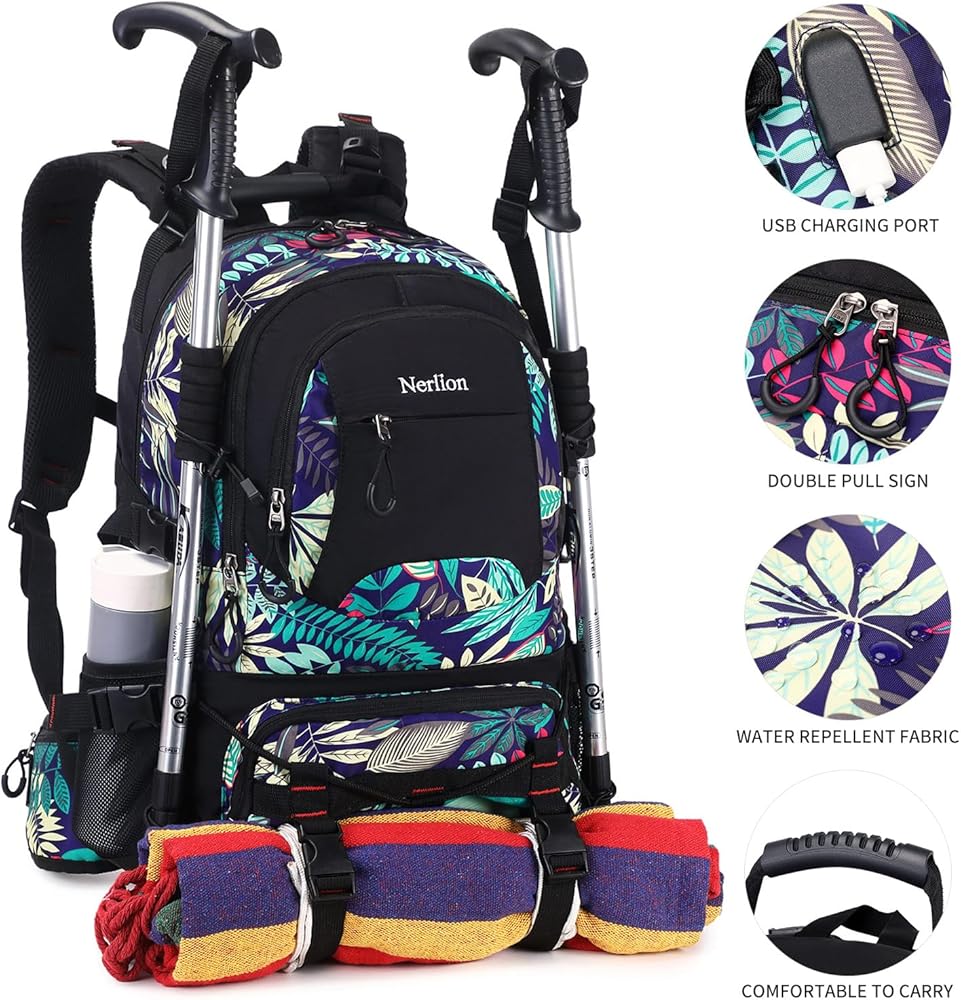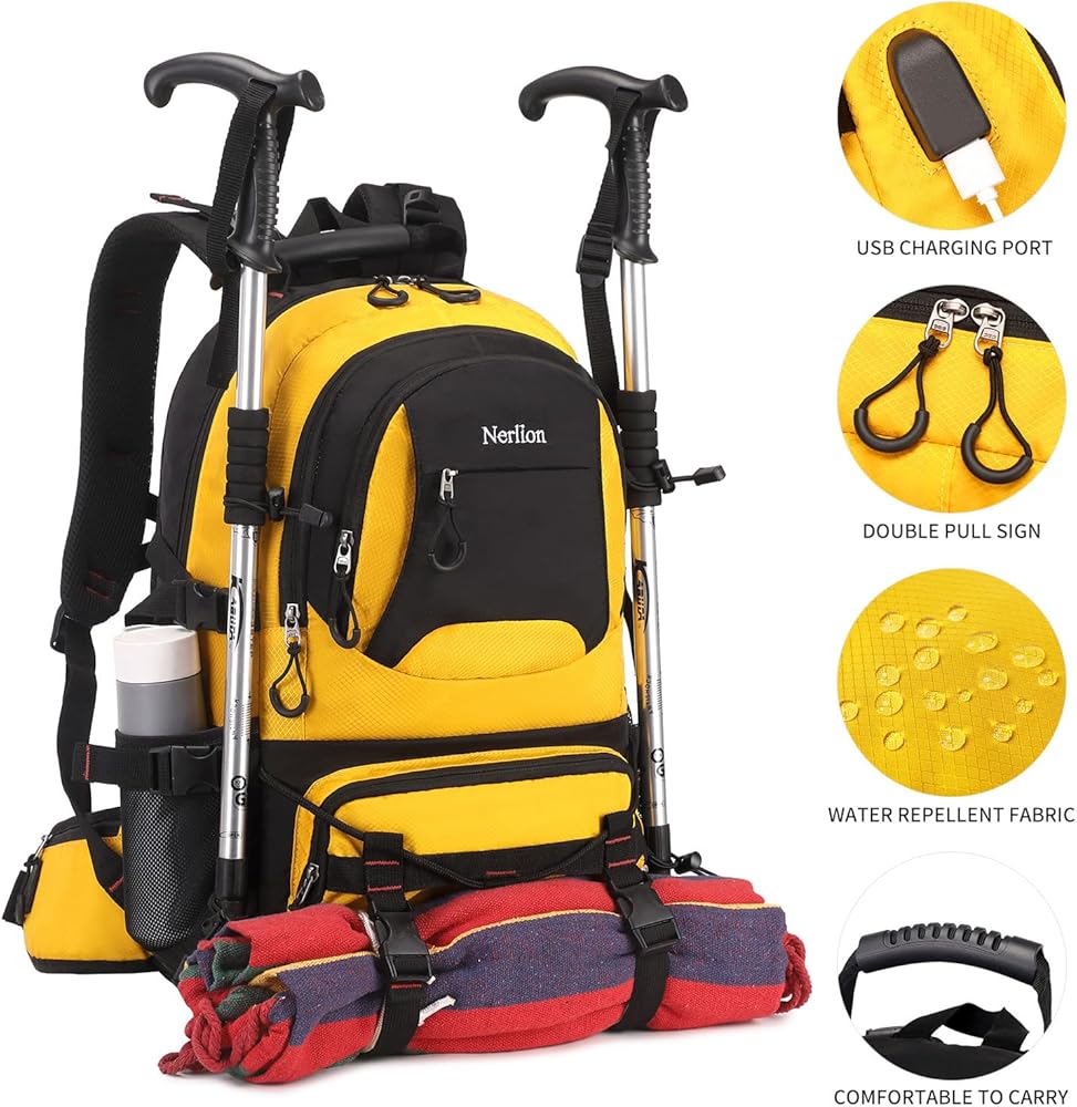 حقيبة ظهر متينة وخفيفة الوزن: حقيبة ظهر Nerlion للمشي لمسافات طويلة مصنوعة من نسيج نايلون سميك للغاية ومقاوم للتمزق ومقاوم للماء ومقاوم للاهتراء. تزن الحقيبة 0.9 كجم