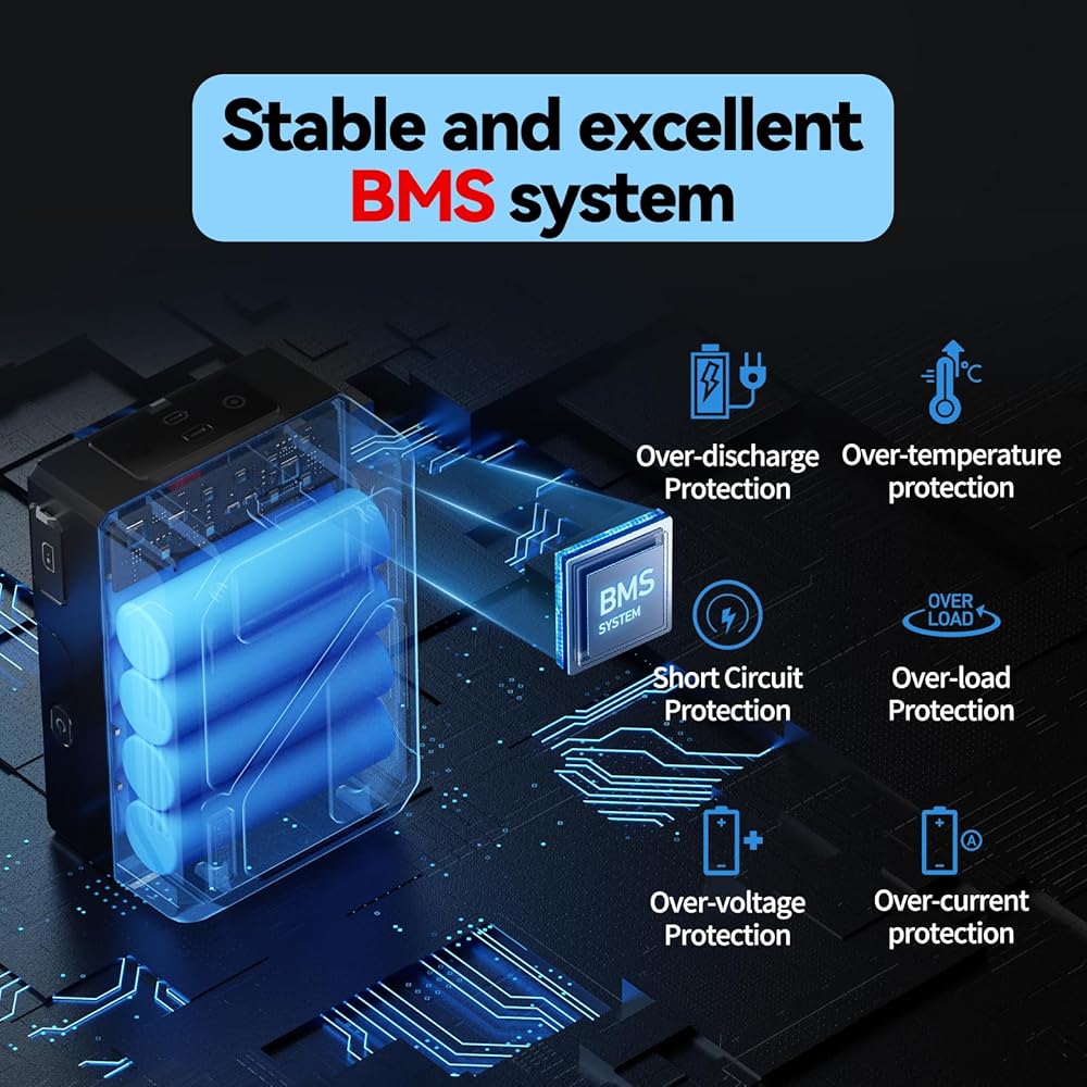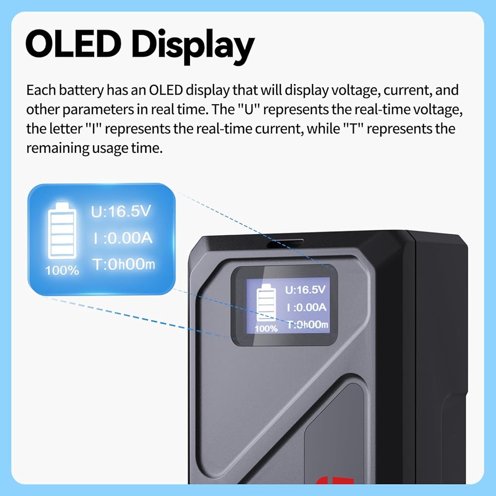【نظام إدارة ذكي وشاشة OLED 】بطارية التركيب (50 وات/14.4 فولت) مجهزة بخلايا بطارية عالية الجودة ونظام إدارة بطارية ممتاز (BMS) لضمان ثبات البطارية وسلامتها، لذلك لا داعي للقلق حول عمر البطارية وقضايا السلامة. عندما يتم شحن بطارية Mini 50 C وتفريغها بشكل طبيعي، ستعرض شاشة OLED الجهد والتيار والمعلمات الأخرى في الوقت الفعلي.