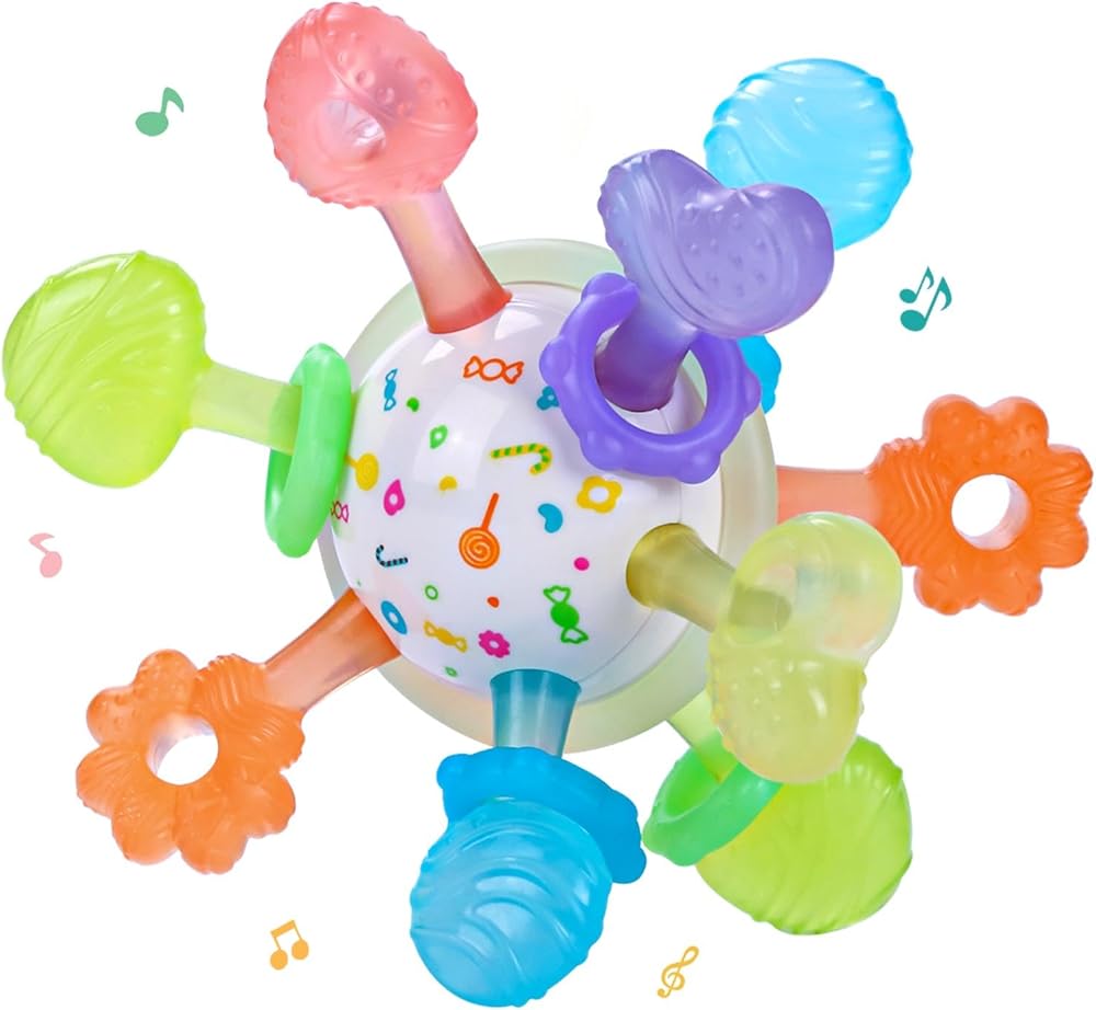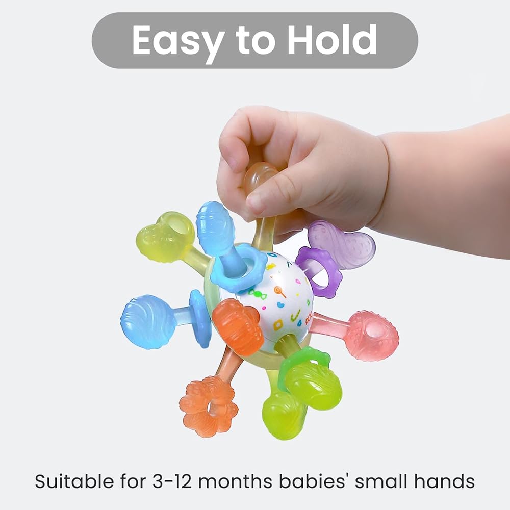 كرة تسنين للأطفال، ألعاب تسنين حسية متعددة من السيليكون، ألعاب تسنين للأطفال من مونتيسوري لتخفيف التسنين، خالية من مادة BPA، لعبة مضغ للأطفال من عمر 0 إلى 12 شهرًا، مقاومة للحرارة