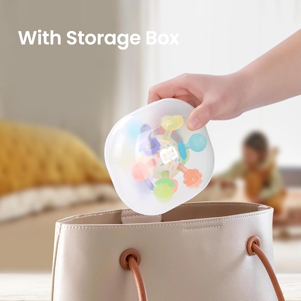 【تحفيز متعدد الحواس】بعيدًا عن تخفيف التسنين، توفر لعبة التسنين مونتيسوري للأطفال استكشافًا حسيًا غنيًا. ألوانها النابضة بالحياة يمكن أن تجذب انتباه طفلك، وتحفز حواسه البصرية. تصدر الخرزات المدمجة صوت خشخشة مع كل هزة، مما يحفز حاسة السمع لديهم. علاوة على ذلك، فإن لف نصفي الكرة ينتج صوت نقر واضح، مما يعزز مهاراتهم الحركية الدقيقة. ومع مجموعة من الأنسجة، من الناعمة إلى الصلبة، فإنها تحفز حاسة اللمس لدى الطفل. تعمل كل هذه الميزات مجتمعة معًا لتعزيز التطور الحسي لطفلك.