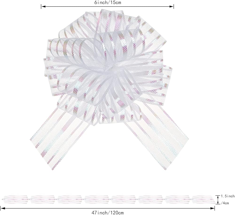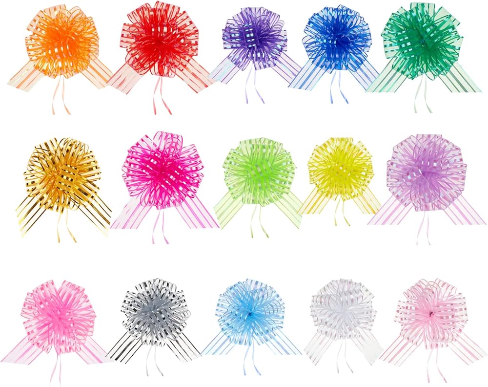 نطاق واسع من الاستخدام: أقواس شريطية سحب بألوان متنوعة مناسبة لتغليف علب الهدايا، وتغليف الزهور وتزيينها، وحفلات الزفاف، وزينة طاولة الزفاف، وزينة عيد الميلاد، وأعياد الميلاد، والحفلات، وتزيين زجاجات النبيذ، وتغليف الصندوق، وصندوق الخواتم، وصندوق المجوهرات، والحرفية ، تزيين السيارات، العطلات، المهرجانات، الزفاف، سلال الهدايا