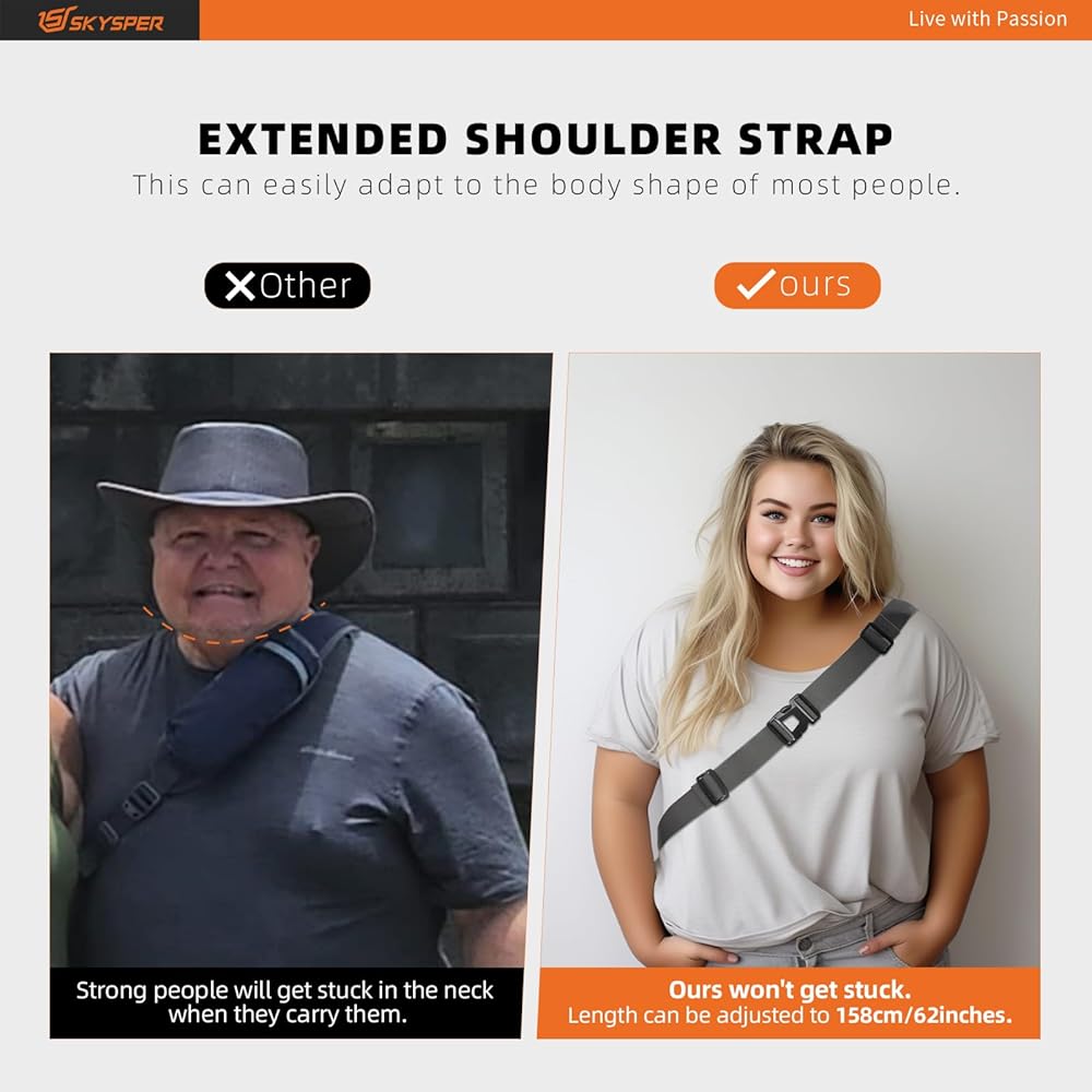 • حزام كتف ممتد قابل للتعديل: حقيبة الكتف الرجالية من SKYSPER تحتوي على نطاق تعديل لأشرطة الكتف من 15.8 إلى 49.2 بوصة. وهذا يمكن أن يتكيف بسهولة مع شكل الجسم لمعظم الناس. يمكنك تعديل الطول المثالي بسهولة للحصول على ملاءمة مثالية للجسم، كما يمكن لإبزيم التثبيت تأمين الأربطة الزائدة بشكل آمن لمنع جيب الحزام من الارتخاء والانزلاق. يمكنك ارتداؤها كحقيبة ظهر بحزام واحد للرجال، أو حقيبة حمل، أو حقيبة ظهر، أو حقيبة صدر أو حقيبة كتف.