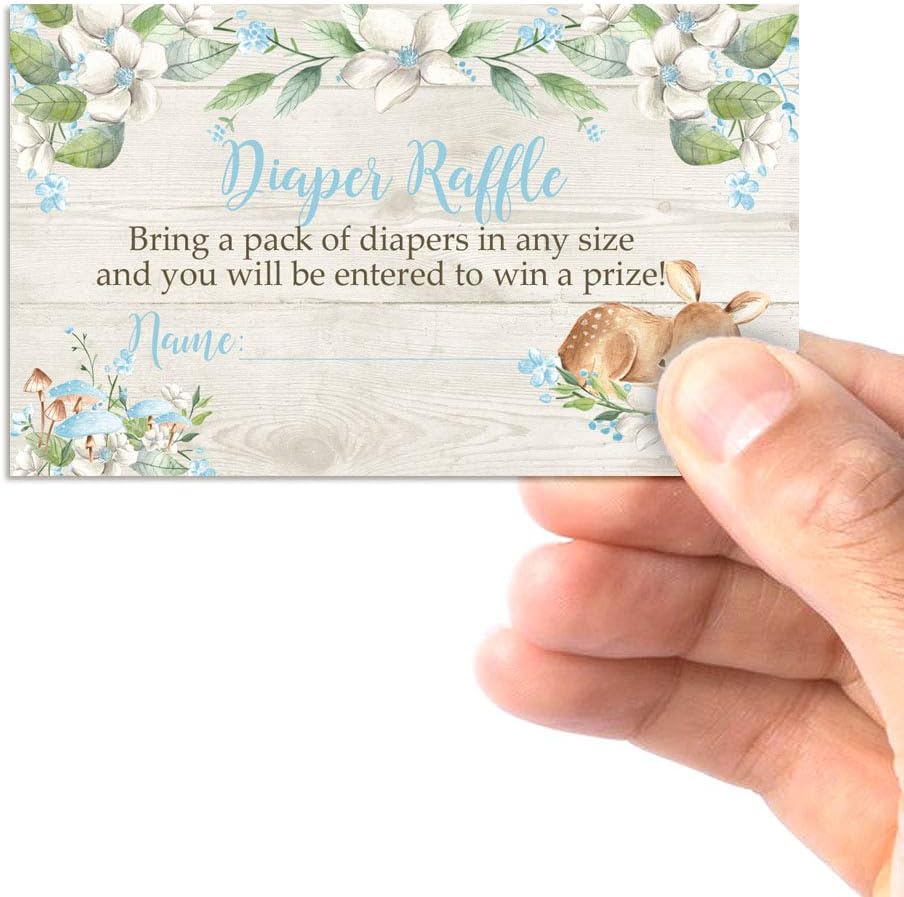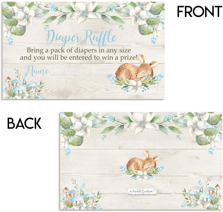 الجاذبية الزائدة: صممتها أم موهوبة، تتميز هذه البطاقات الجميلة بغزال صغير رائع وأوراق شجر بألوان مائية وزهور بيضاء رقيقة - موضوع الغابة المثالي لصبي صغير في الطريق! تصميم رائع مقترن بعبارة لطيفة تشجع الضيوف على إحضار مجموعة من الحفاضات مما يجعلها لعبة استحمام رائعة للأطفال. أماندا الخلق. التصميم الأصلي بواسطة أماندا كريشن