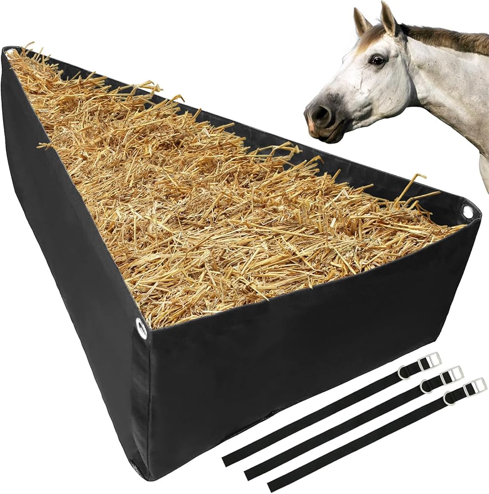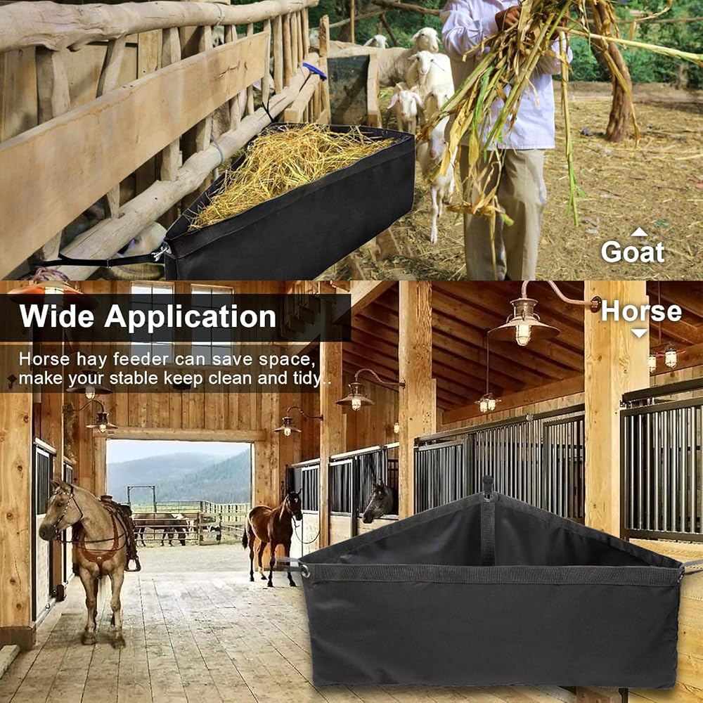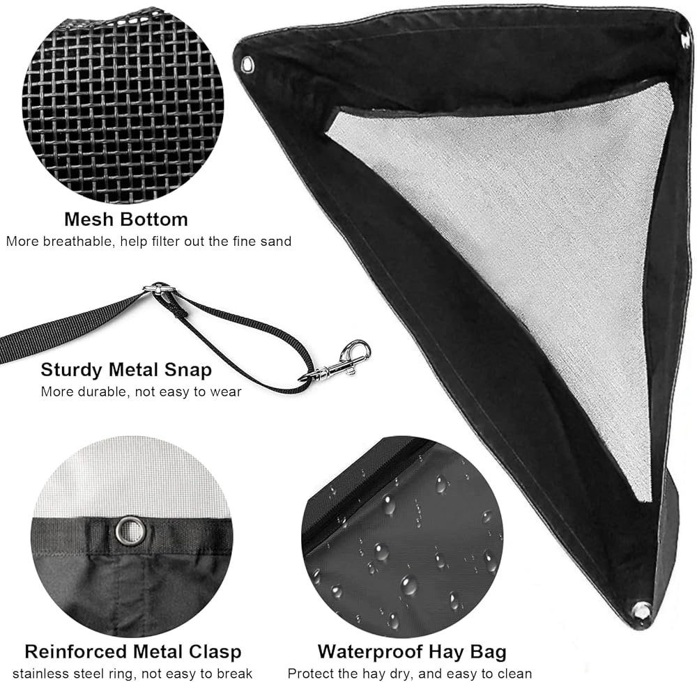 سعة كبيرة - بأبعاد 33.5 بوصة × 25.6 بوصة × 22.7 بوصة وعمق 13.77 بوصة، تحتوي حقيبة قش الحصان الكبيرة جدًا على كمية مذهلة من القش. يمكن استخدام أكياس القش هذه ليس فقط لإطعام الخيول ولكن أيضًا للماعز.