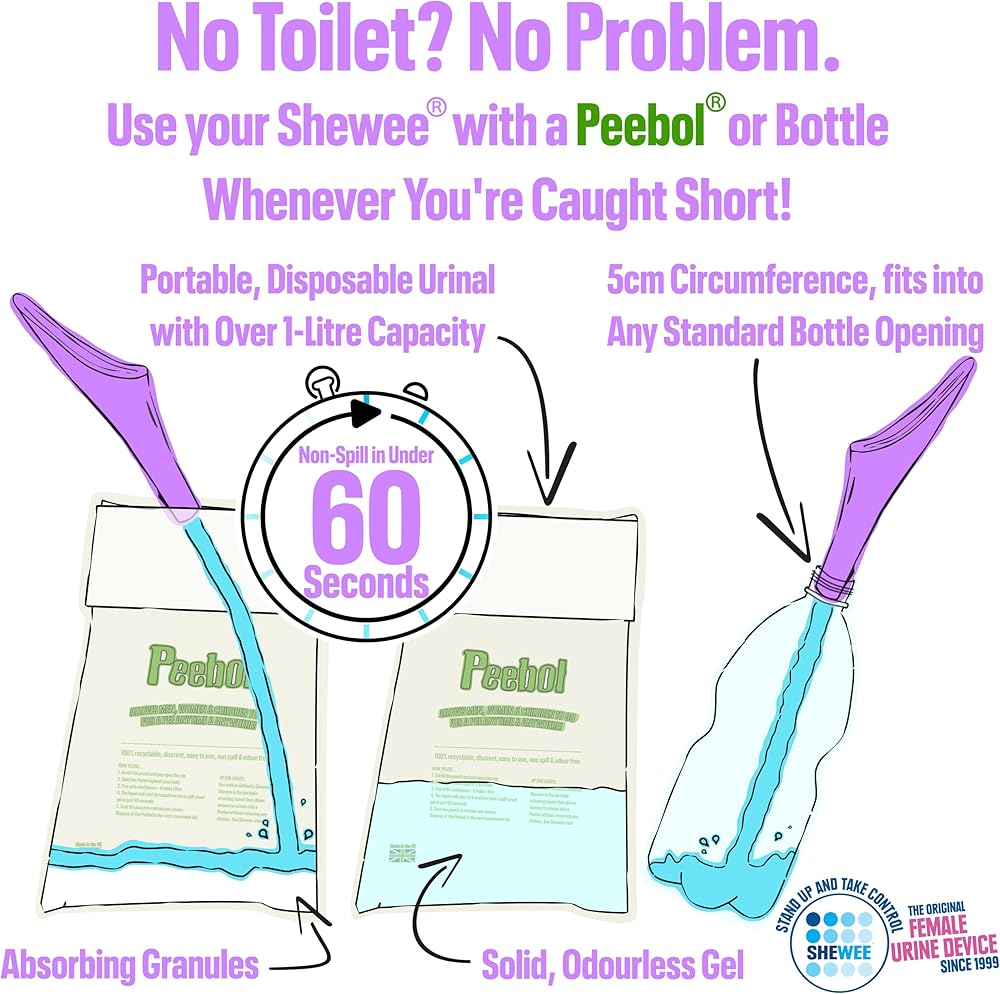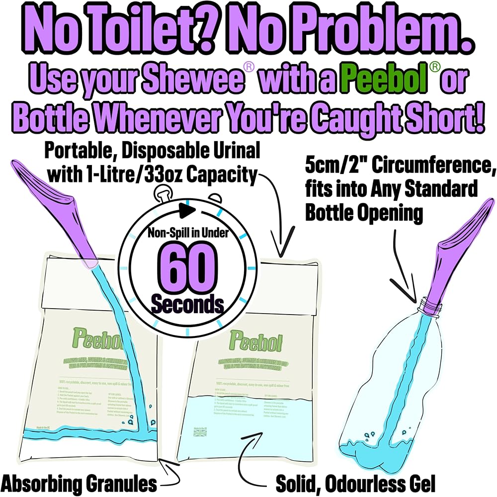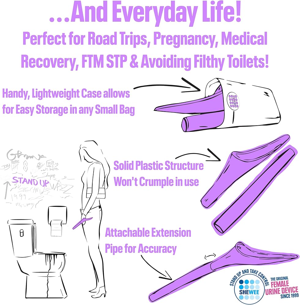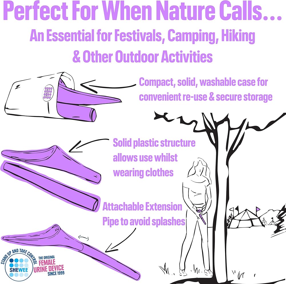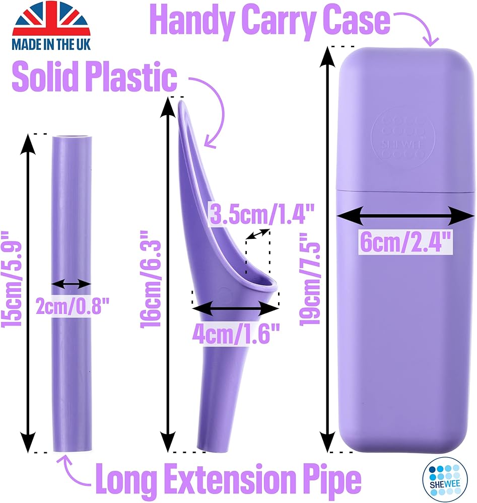 مبولة SHEWEE Extreme للإناث - صنع في المملكة المتحدة - جهاز تبول محمول وقابل لإعادة الاستخدام. المهرجانات، والتخييم، والسيارات، وأساسيات المشي لمسافات طويلة للنساء. حامل للتبول مع حقيبة حمل وأنبوب تمديد