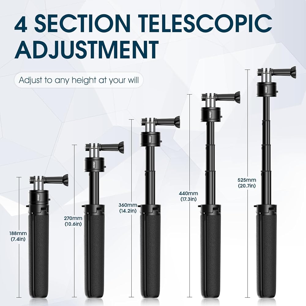 ULANZI MT-34 حامل ثلاثي القوائم قابل للتمديد لكاميرا Gopro، Go Quick II 20.7 بوصة حامل ثلاثي القوائم لكاميرا الحركة مع حزام يد 4 مراحل ملحقات مدونة فيديو محمولة لـ GoPro Hero 12 11 10 9/Max/DJI OSMO/Insta 360