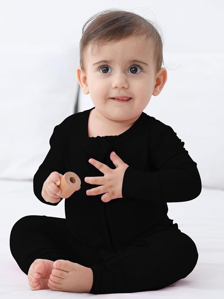بيجامات بسحاب بدون قدم مصنوعة من 97% حرير صناعي مصنوع من الخيزران و3% ألياف لدنة ناعمة للغاية ولطيفة على بشرة طفلك، وهي اختيار مثالي لوقت اللعب أو القيلولة أو مجرد التسكع.