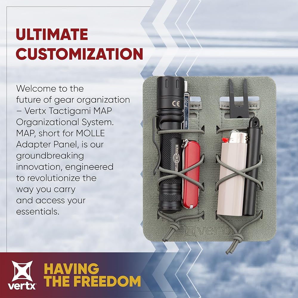 التخصيص النهائي - ارفع مستوى لعبة حمل العتاد الخاصة بك باستخدام إدراج منظم مولي المتوافق مع MAP (لوحة محول MOLLE)، مما يوفر تخصيصًا لا مثيل له لملحقاتك.