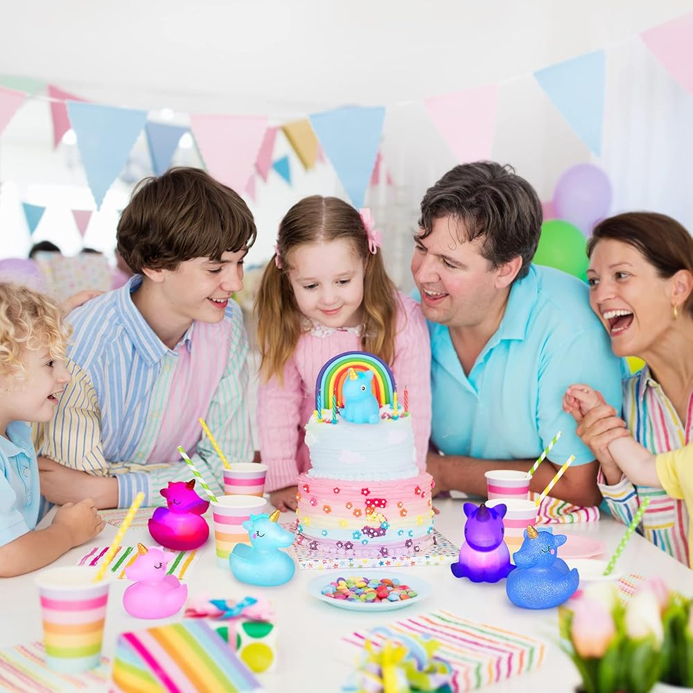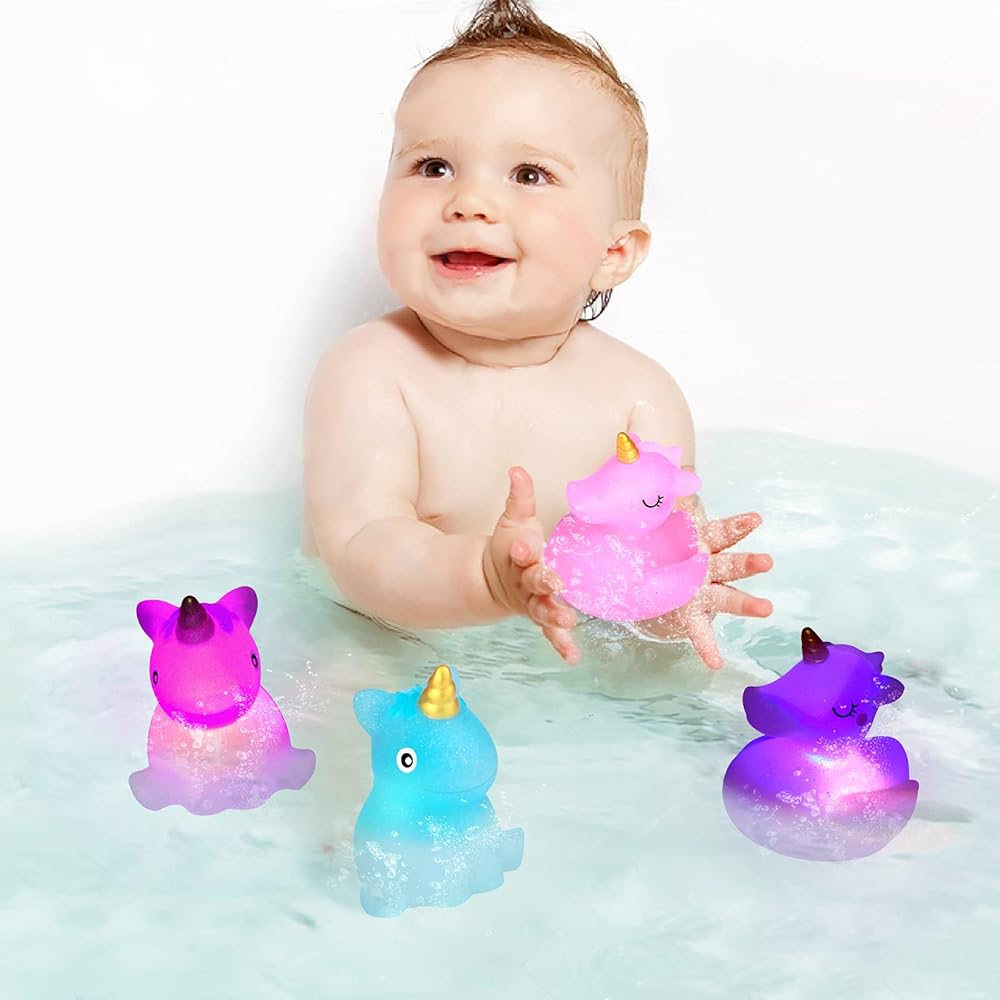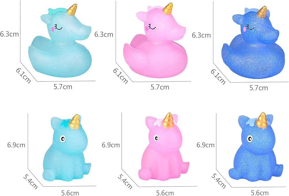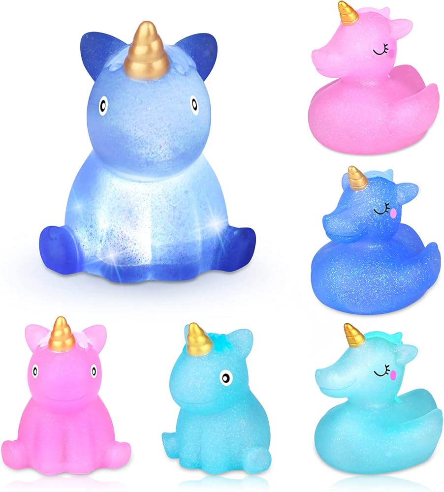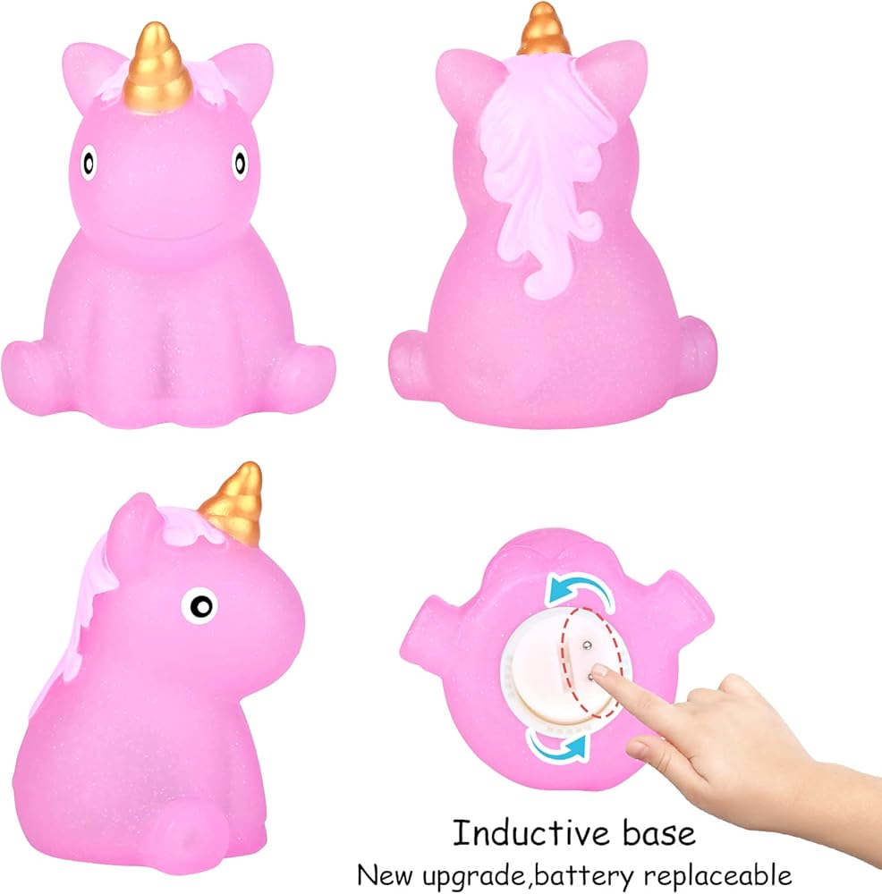 تضيء يونيكورن العائمة حوض الاستحمام اللعب الحيوان وامض حمام لعبة يونيكورن بريق لعبة الماء للأطفال كعكة الديكور الحمام دش ألعاب حمام سباحة حزب تفضل 6 قطع مجموعة