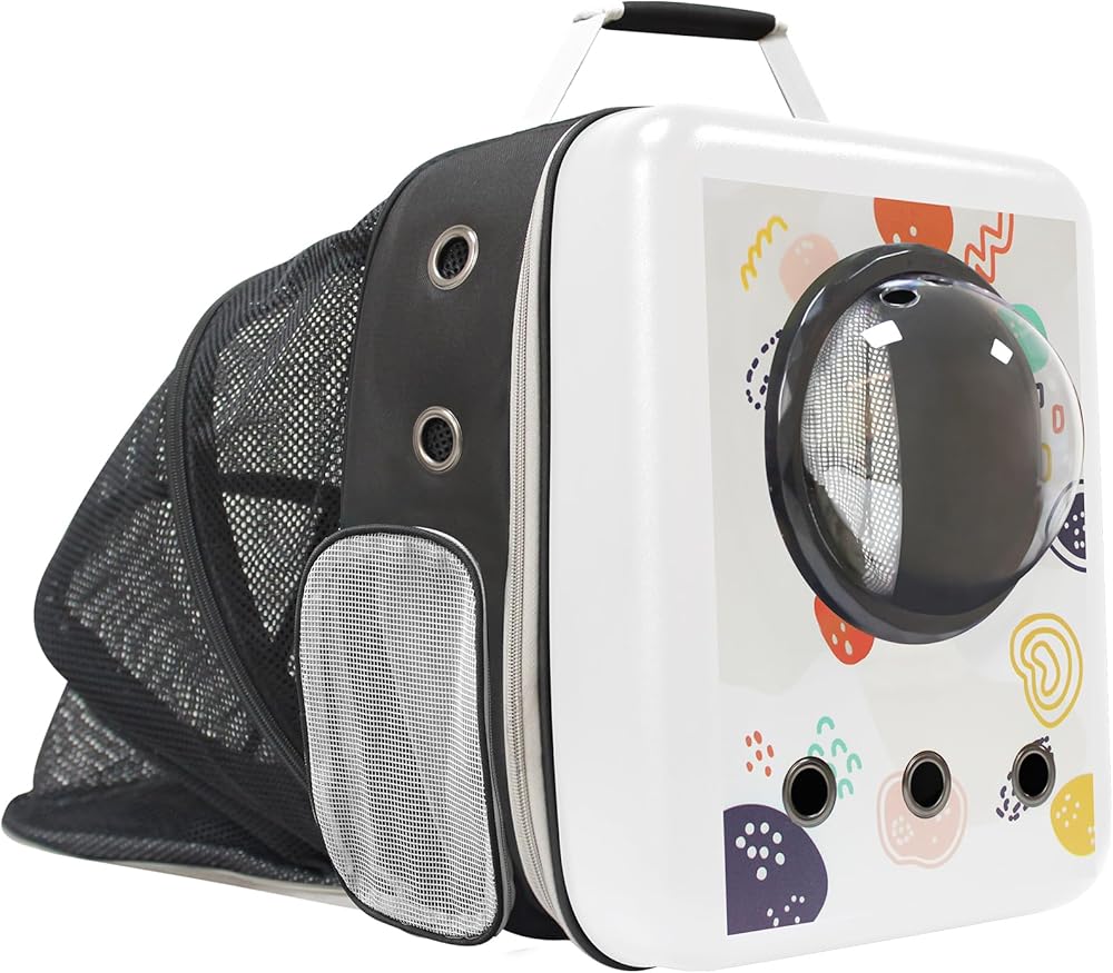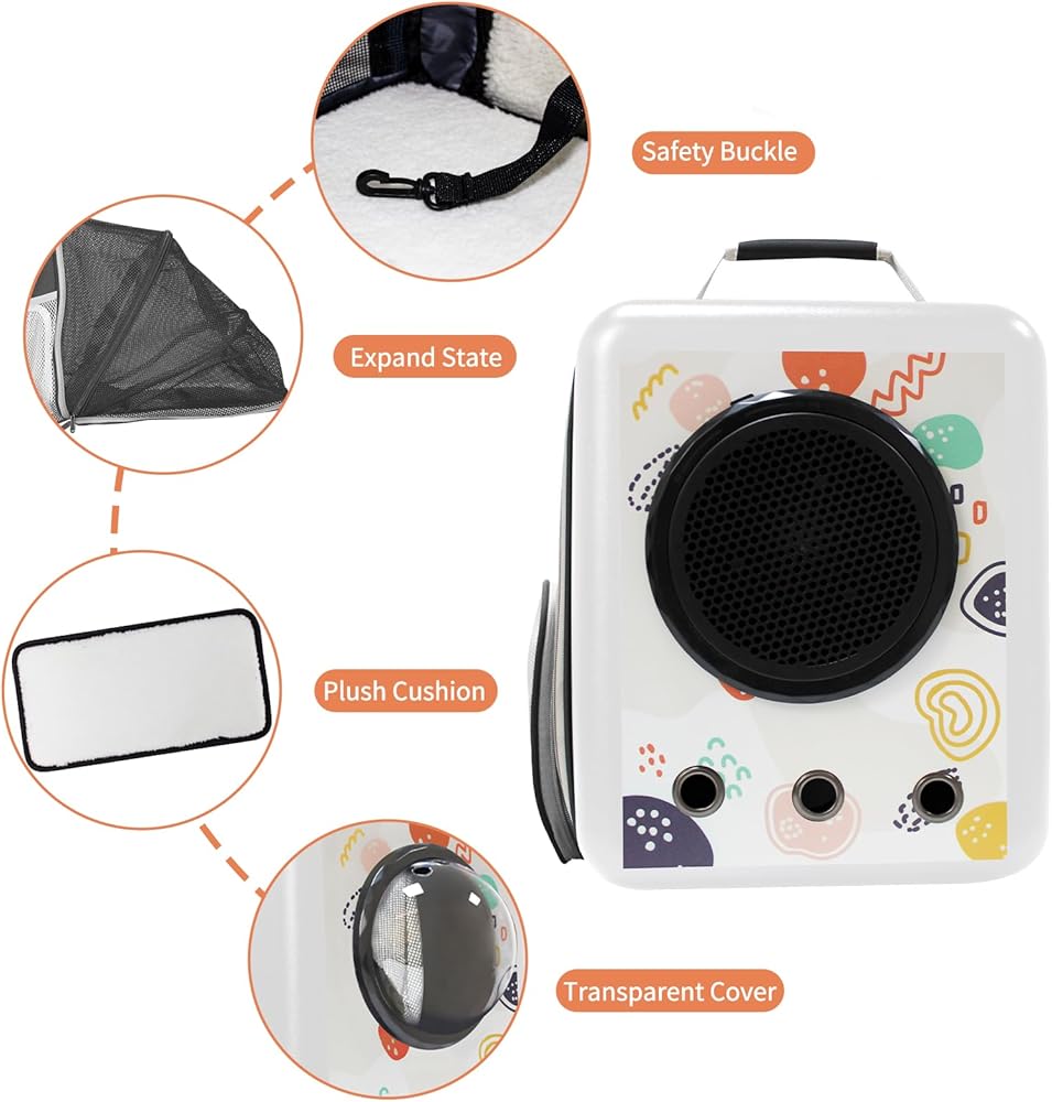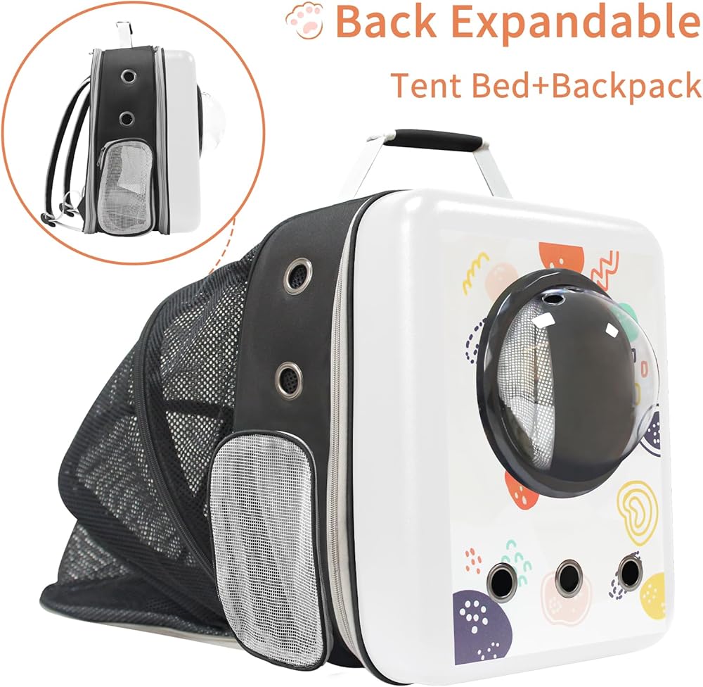 يمكن تمديد حقيبة ظهر الحيوانات الأليفة لمنح حيوانك الأليف مساحة أكبر للأنشطة. أثناء إقامتك، يمكنك فتح طبقة الامتداد واستخدامها مؤقتًا كشقة للحيوانات الأليفة. توجد 3 فتحات تهوية على الجانب الأمامي من حقيبة الظهر، وتوجد نوافذ شبكية مسامية على جميع الجوانب لتوفير هواء خارجي منعش للحيوانات الأليفة. يوجد مشبك أمان داخل الحقيبة لمنع الهروب.