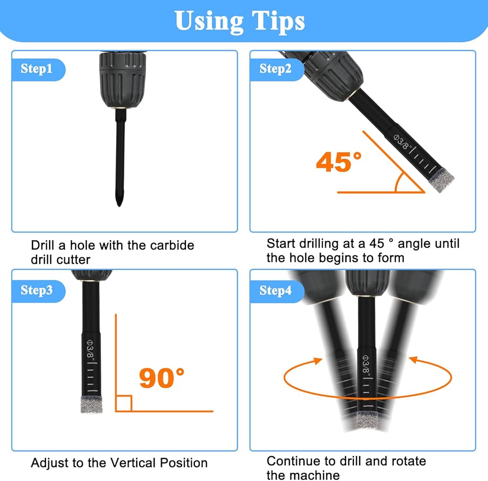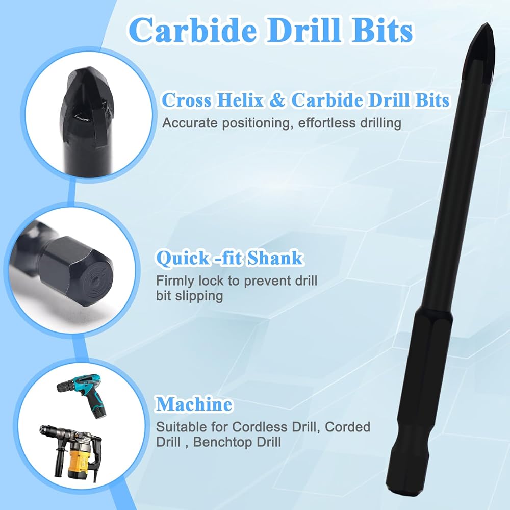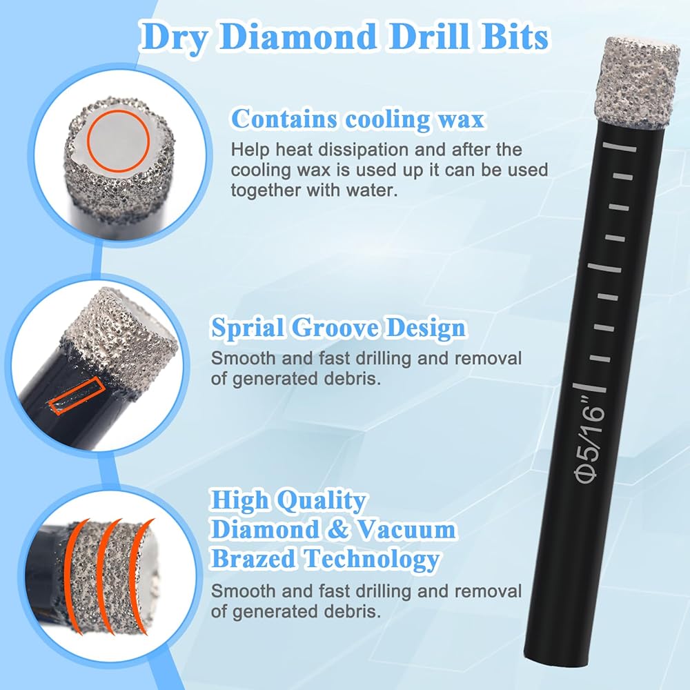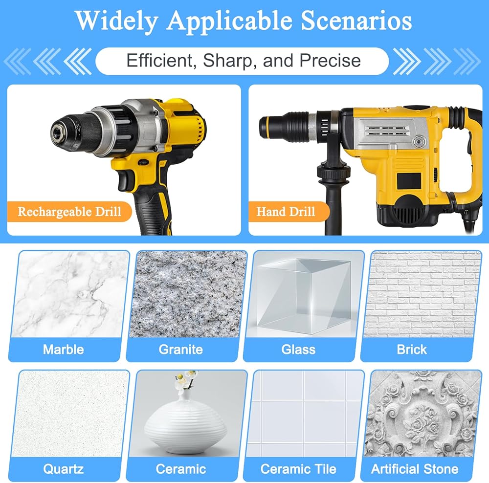 👍[حفر نظيف ودقيق] تم تصميم كل لقمة مثقاب باستخدام تقنية الماس النحاسية المفرغة وشكل أسنان أخدود خاص على شكل حرف U لإزالة الحطام بسرعة. مجهزة بساق سداسية سريعة التغيير مقاس 1/4 بوصة للحصول على قبضة أفضل والحصول على حفر نظيف ودقيق، متوافقة مع معظم الآلات.