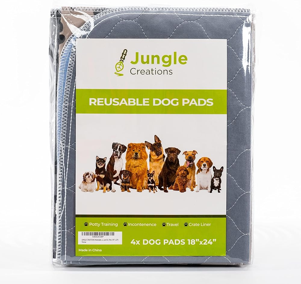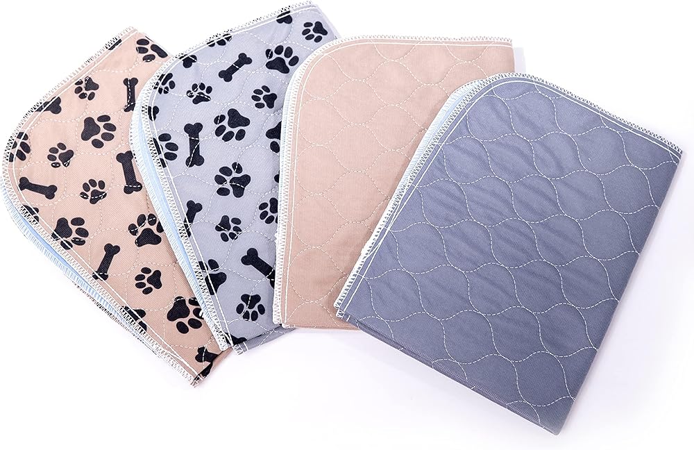 وسادات تبول للكلاب قابلة للغسل (عبوة من 4 قطع) سجادات تدريب على المرحاض مضادة للماء وقابلة لإعادة الاستخدام لقفص لعب الجراء، صندوق الإنجاب، بطانة قفص للحيوانات الأليفة الصغيرة والمتوسطة (18 بوصة × 24 بوصة)