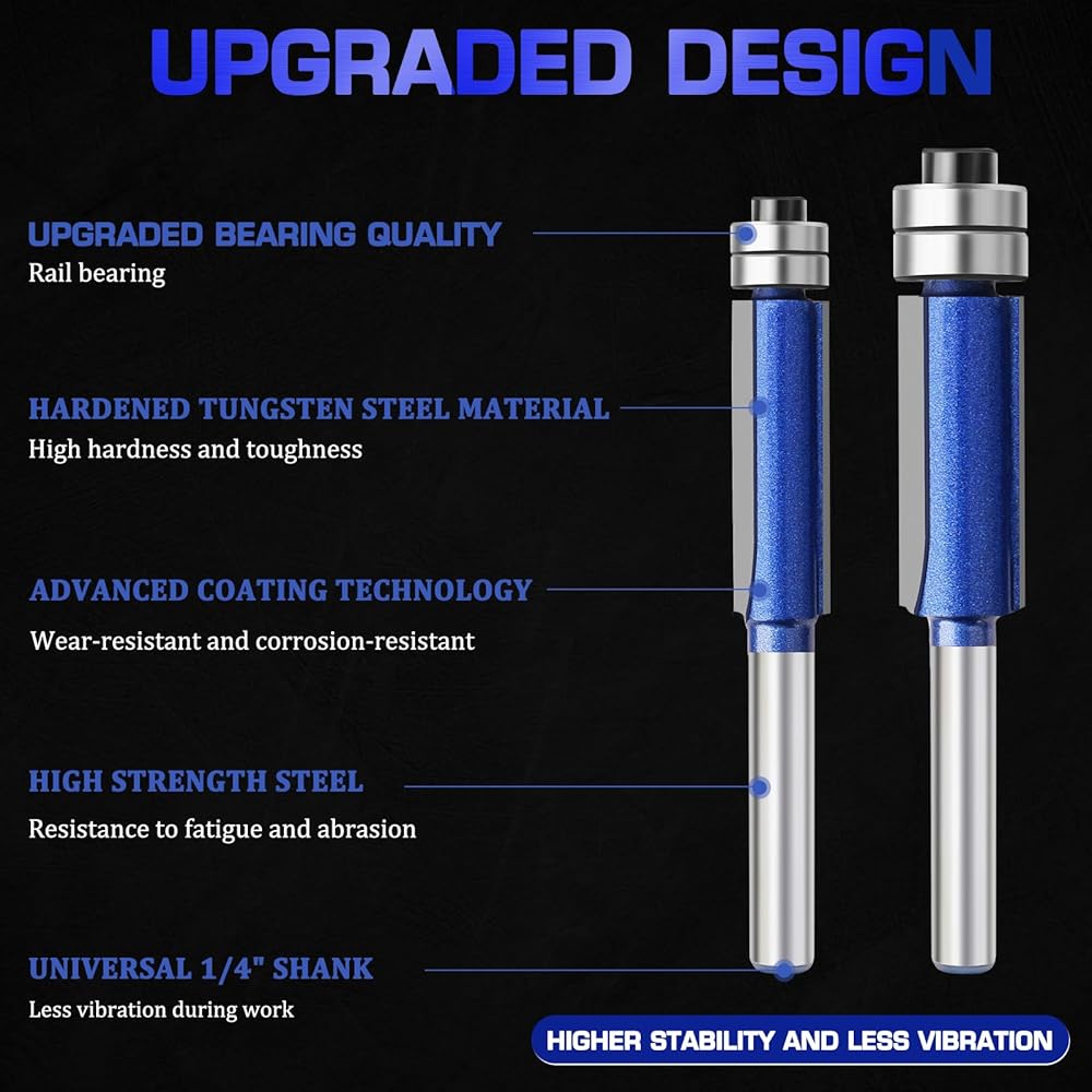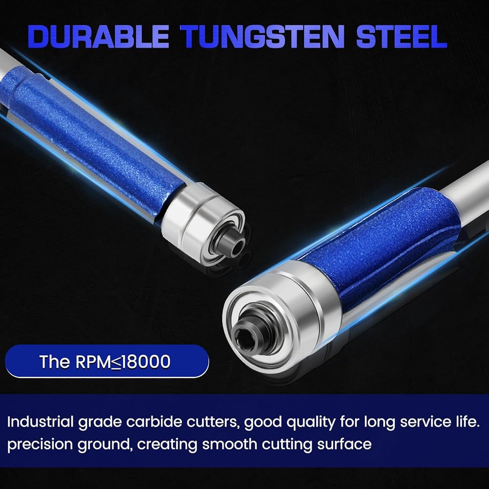 2. 【قطع دقيقة】قطع دقيقة: 4 قطع 1/4 مجموعة لقم توجيه بنمط ساق، قالب كربيد علوي محمل، مجموعة لقم تقليم متدفقة، تمنع التمزق، مناسبة تمامًا للعمل الخفيف، 1/4 بوصة، 5/16 بوصة ، قطر القطع 3/8 بوصة، 1/2 بوصة، لقمة مثقاب لآلة التشذيب، طول القطع: 30 مم