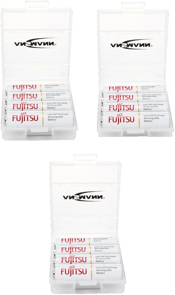 نطاق التسليم: حزمة من 12 بطارية فوجيتسو AA NiMH قابلة لإعادة الشحن | 3 حالات بطارية أنسمان | بديل مباشر لـ Ansmann Max E Pro AA
