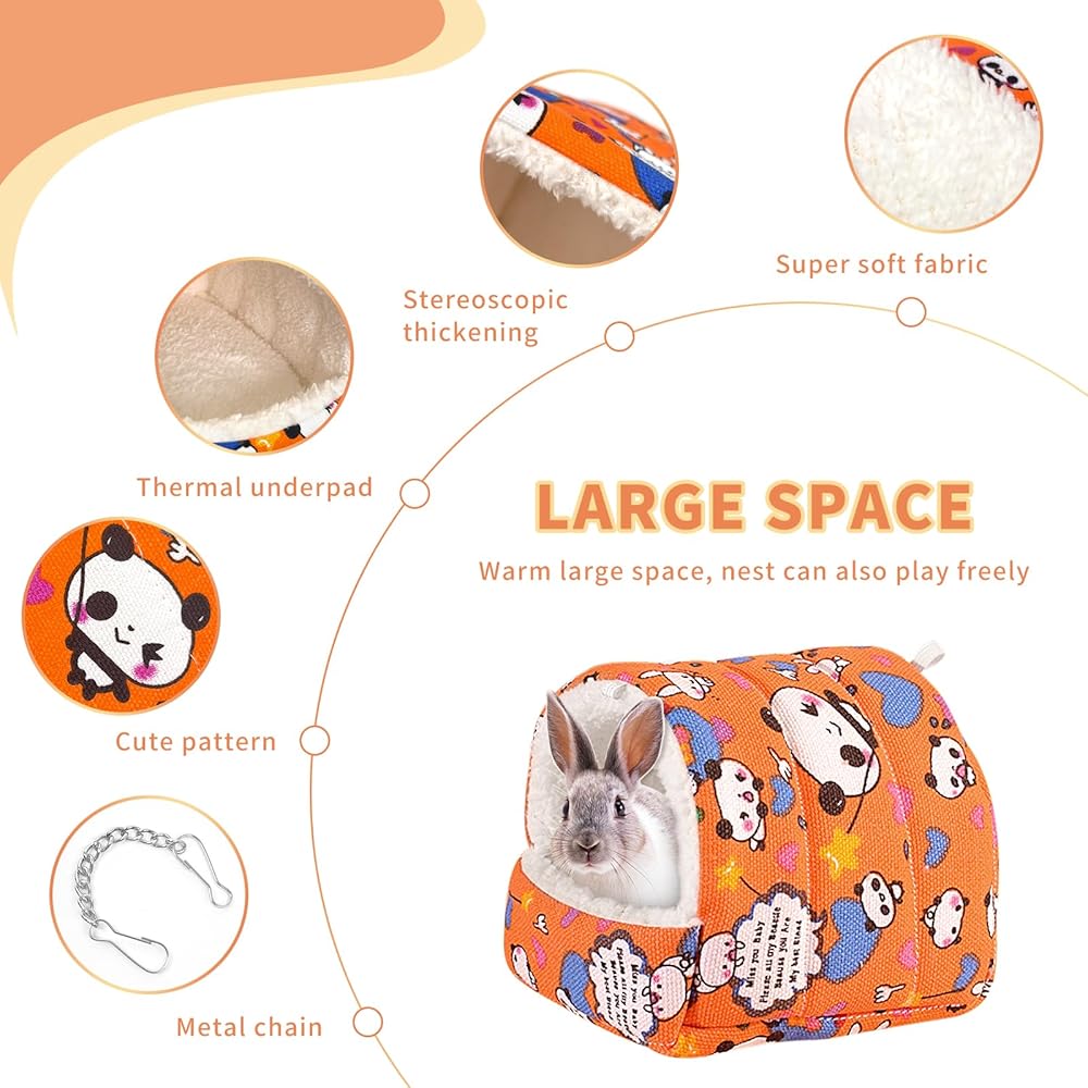 حجم كبير - لدينا مقاسان للاختيار من بينها، مقاس L ومقاس XL، منازل مريحة للأرانب الصغيرة والخنازير الغينية والقوارض والقنافذ والهامستر والسناجب وغيرها من الحيوانات الصغيرة ذات الحجم المماثل. يرجى اختيار المقاس المناسب لحيوانك الأليف.