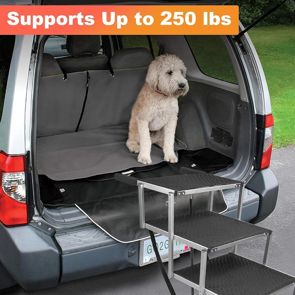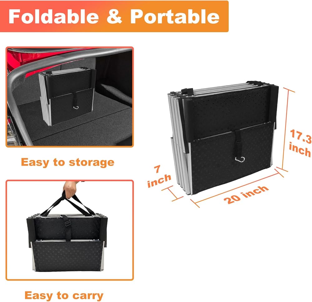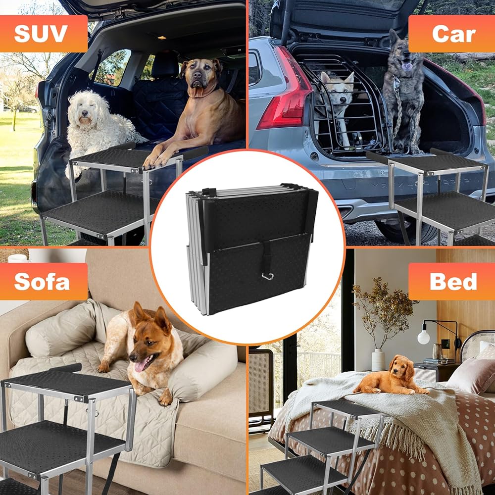 • خفيف الوزن ومتين: سلم الكلاب الكبير القابل للطي مصنوع من الألومنيوم، ويزن 12.3 كجم فقط، ويمكنه دعم ما يصل إلى 250 كجم. إنه متين ويمكنه تحمل الاستخدام الثقيل.