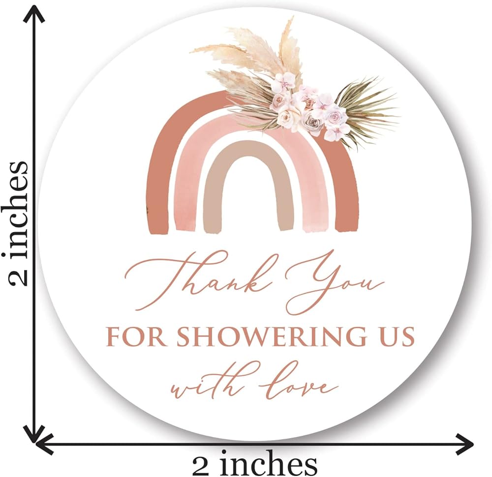 ملصق مستدير مقاس 2 بوصة من Pampas Grass Boho Rainbow Baby Shower Thanks You Favor - مجموعة من 40 قطعة