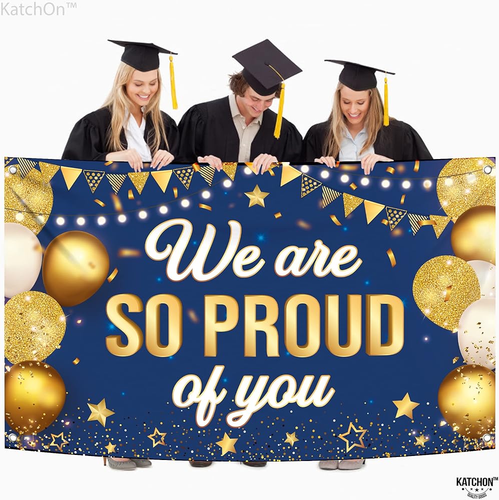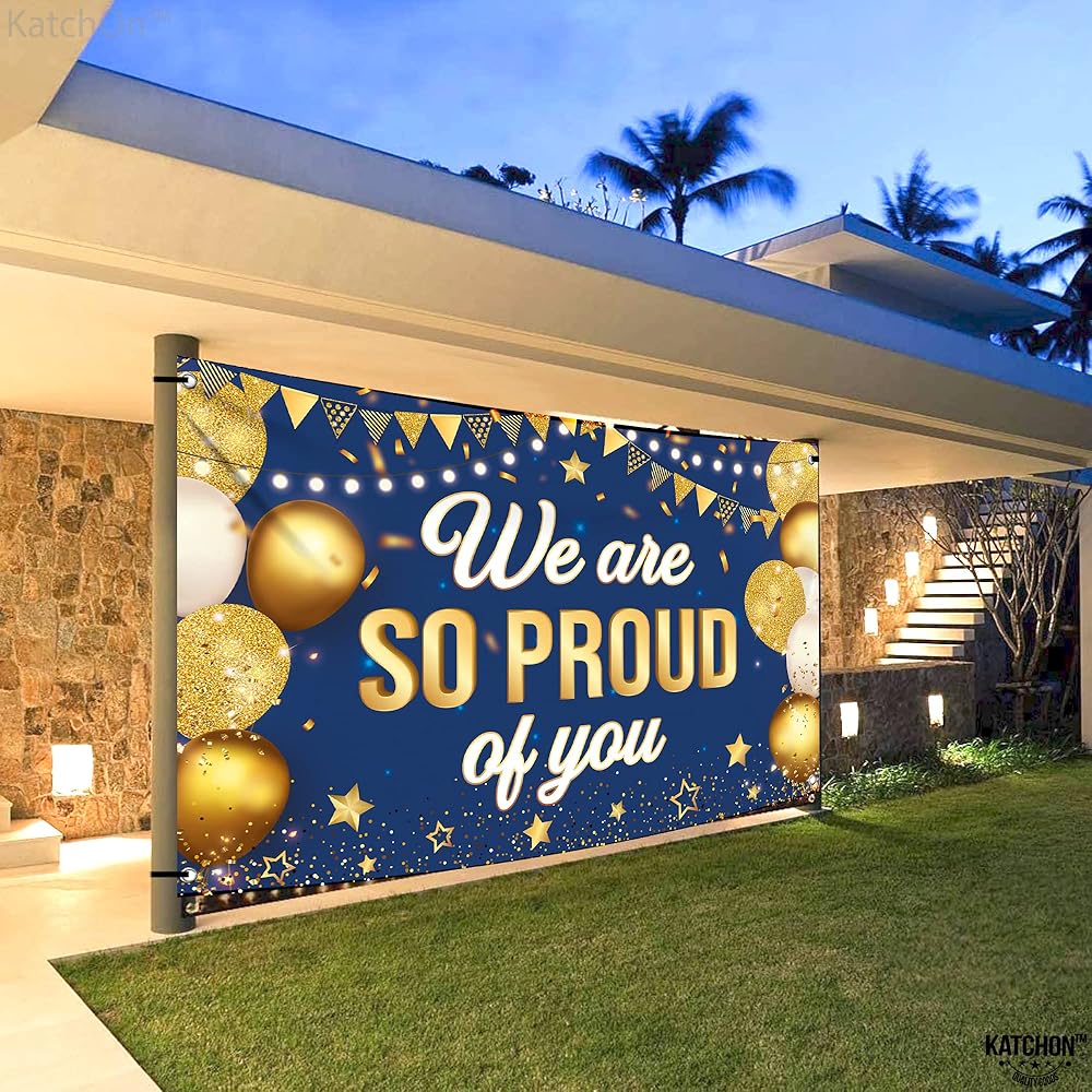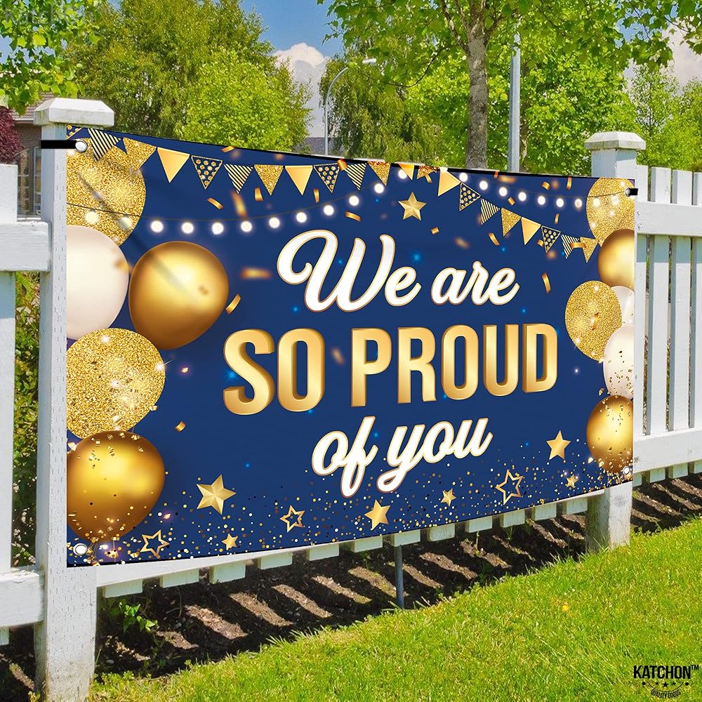 مقاس كبير جدًا: 72 × 44 بوصة | لافتة جميلة باللونين الأزرق والذهبي - هل ترغب في الحصول على ديكورات تخرج متلألئة وخاصة للغاية باللونين الأزرق والذهبي لعام 2024؟ هذا اللون الأزرق نحن فخورون جدًا بك لافتة بحجم كبير 72 × 44 بوصة مع بالونات ذهبية مزروعة في كل زاوية مما يجعل لافتة التخرج الكبيرة 2024 باللونين الأزرق والذهبي أكثر سهولة في التزيين أو التعليق في أي مكان تريد لتزيين التخرج فئة 2024.
