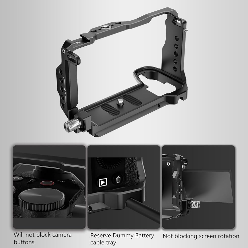 مجموعة قفص A6700 لكاميرا Sony A6700 مع مشبك كابل لـ HDMI، لوحة مدمجة سريعة التحرير لنوع Arca، قفص فيديو لكاميرا صناعة الأفلام مع حامل حذاء، 1/4 بوصة - 20 و3/8 بوصة - 16 ثقوب مترابطة