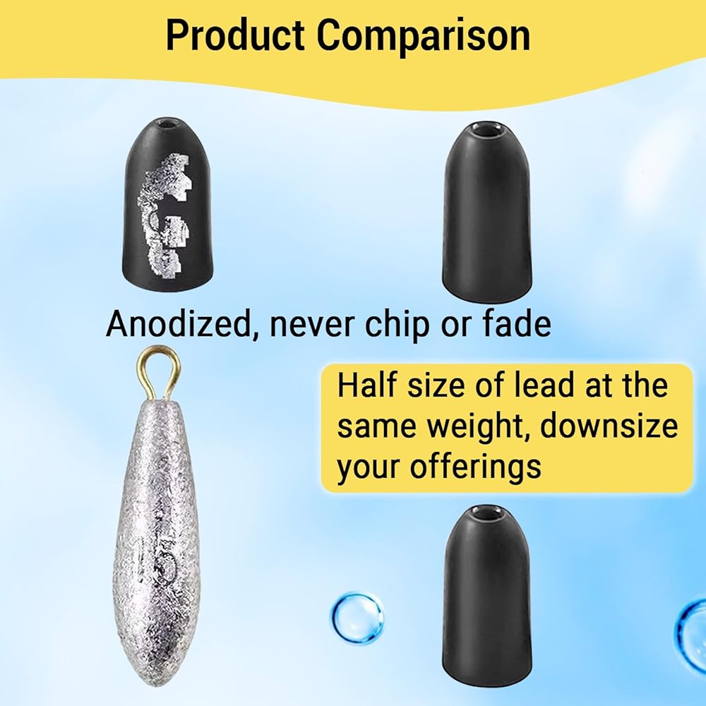 لا يبهت - الجزء الداخلي من أوزان الصيد التنجستين مصقول للغاية ولا يمكن إدخاله للسماح بخيوط الخط بسهولة، دون خدش خط الصيد الخاص بك. لا توجد حواف حادة في الخارج، وعقبات أقل على الأعشاب الضارة.