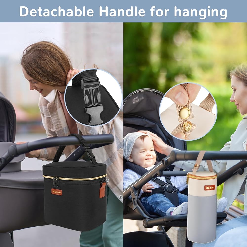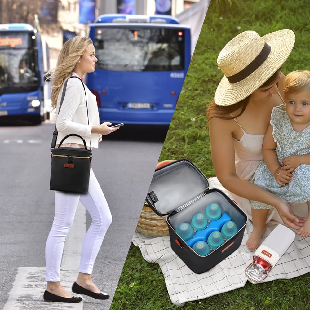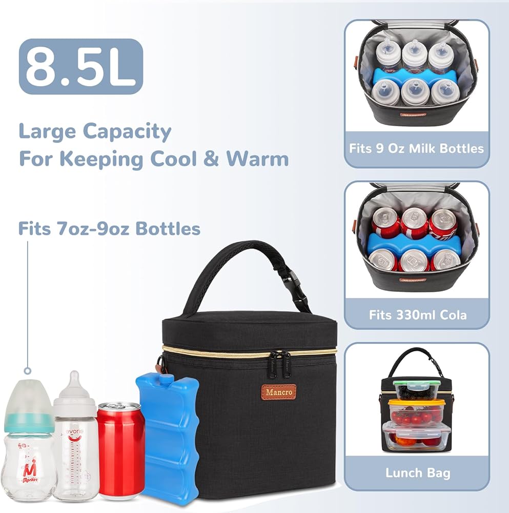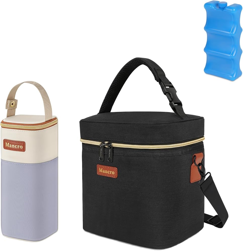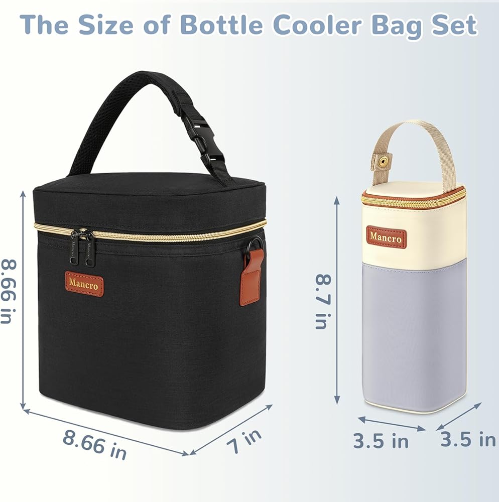 حقيبة تبريد حليب الثدي من مانكرو مع علبة ثلج، مقترنة بحقيبة تبريد زجاجات الأطفال المعزولة، مجموعة حقيبة سفر لتبريد حليب الثدي للأم المرضعة والرعاية النهارية