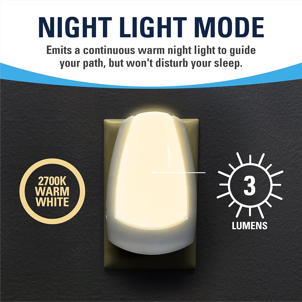 قم بتوصيل الضوء الليلي - ينبعث ضوء ليلي دافئ مستمر لإضاءة طريقك، لكنه لن يزعج نومك. مثالية للممرات وغرف النوم والحمامات. 3 لومن، 2700 ك.
