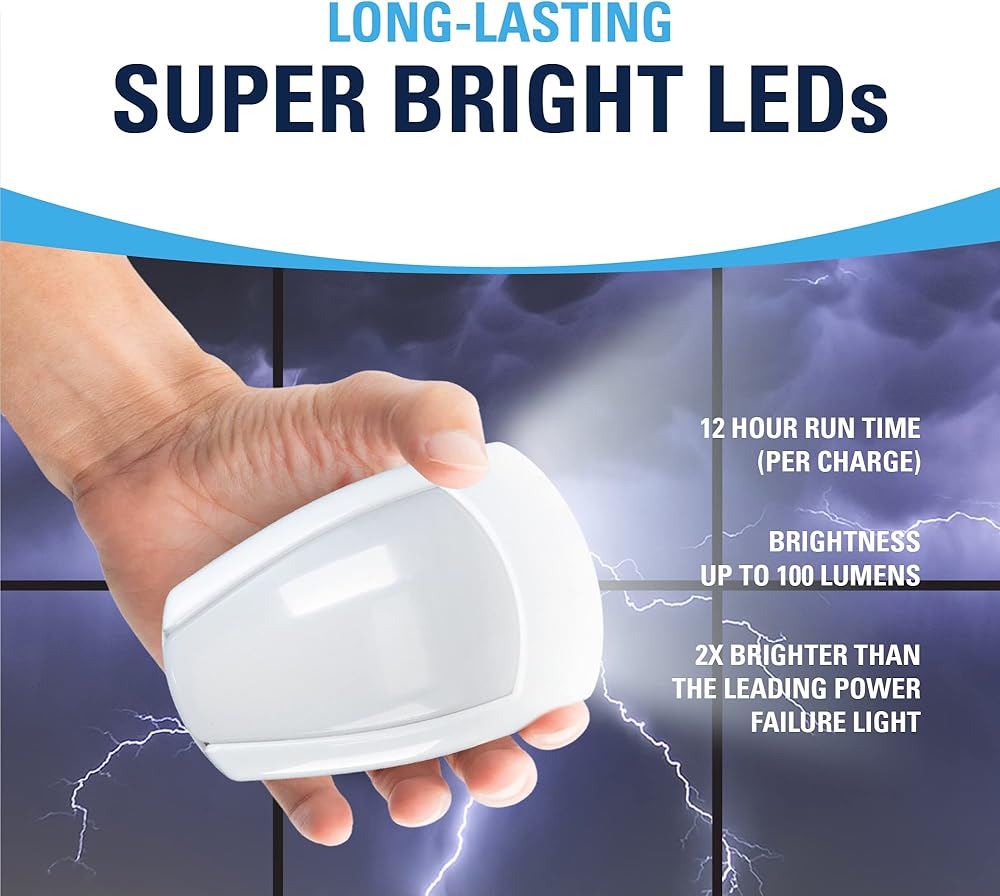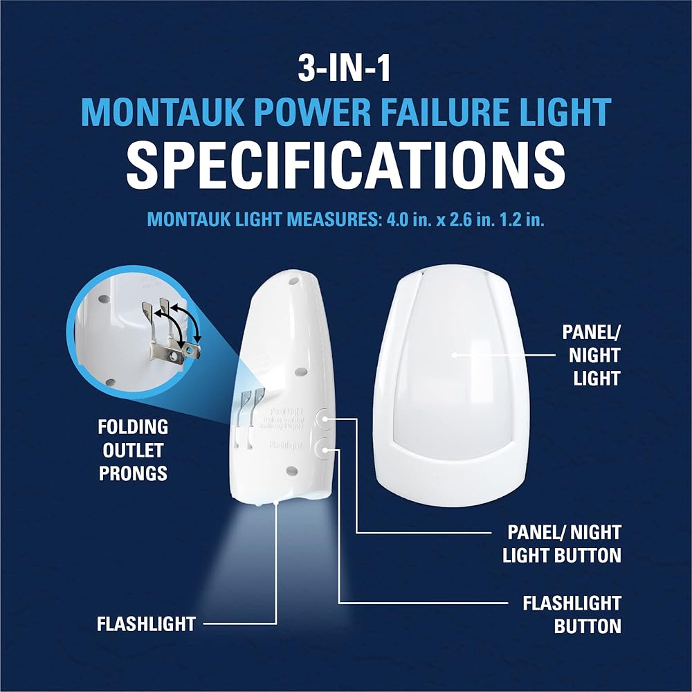 ضوء ليلي لفشل الطاقة من مونتوك - كن مستعدًا مع جهاز الإضاءة في حالات الطوارئ متعدد الأغراض. يعمل كإضاءة ليلية للاستخدام اليومي، وحل إضاءة عند انقطاع التيار الكهربائي. بطارية ليثيوم أيون قابلة للشحن مع أضواء LED.
