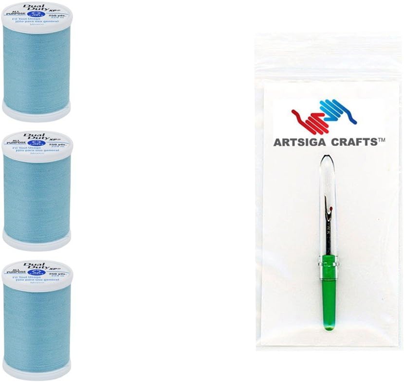 خيط خياطة كوتس آند كلارك ثنائي التحمل XP للأغراض العامة، خيط بولي 250 ياردة (3 عبوات) حزمة رذاذ أكوا مع 1 Artsiga Crafts Seam Ripper S910-5550-3P