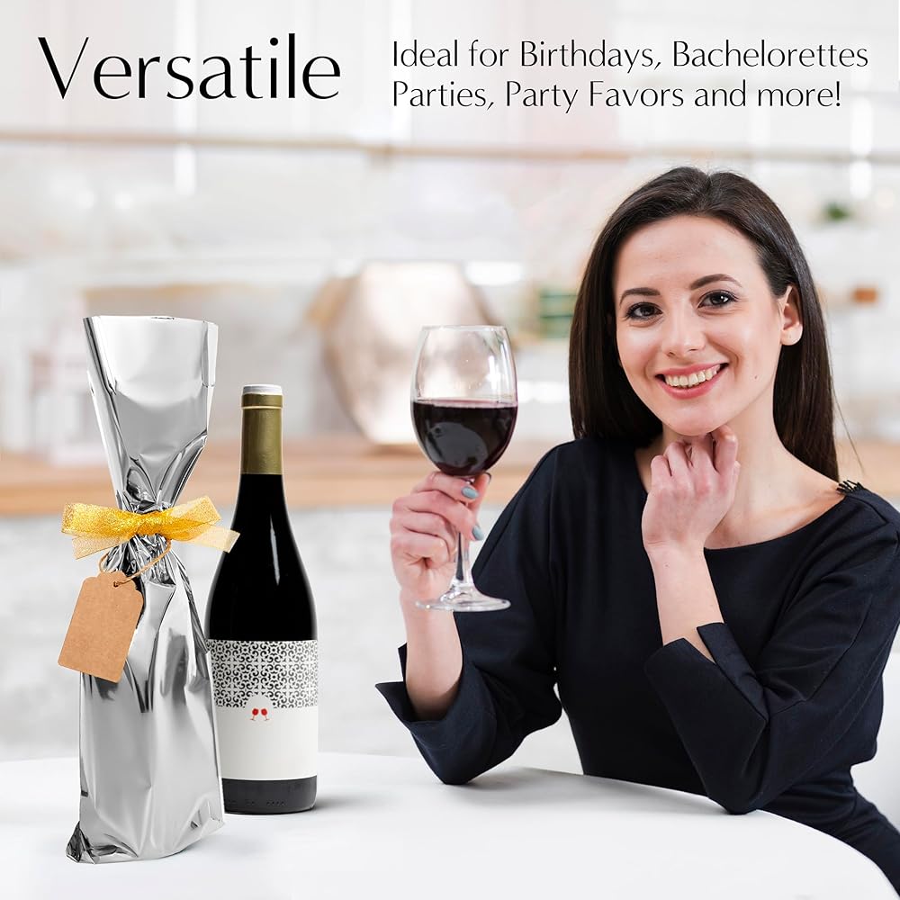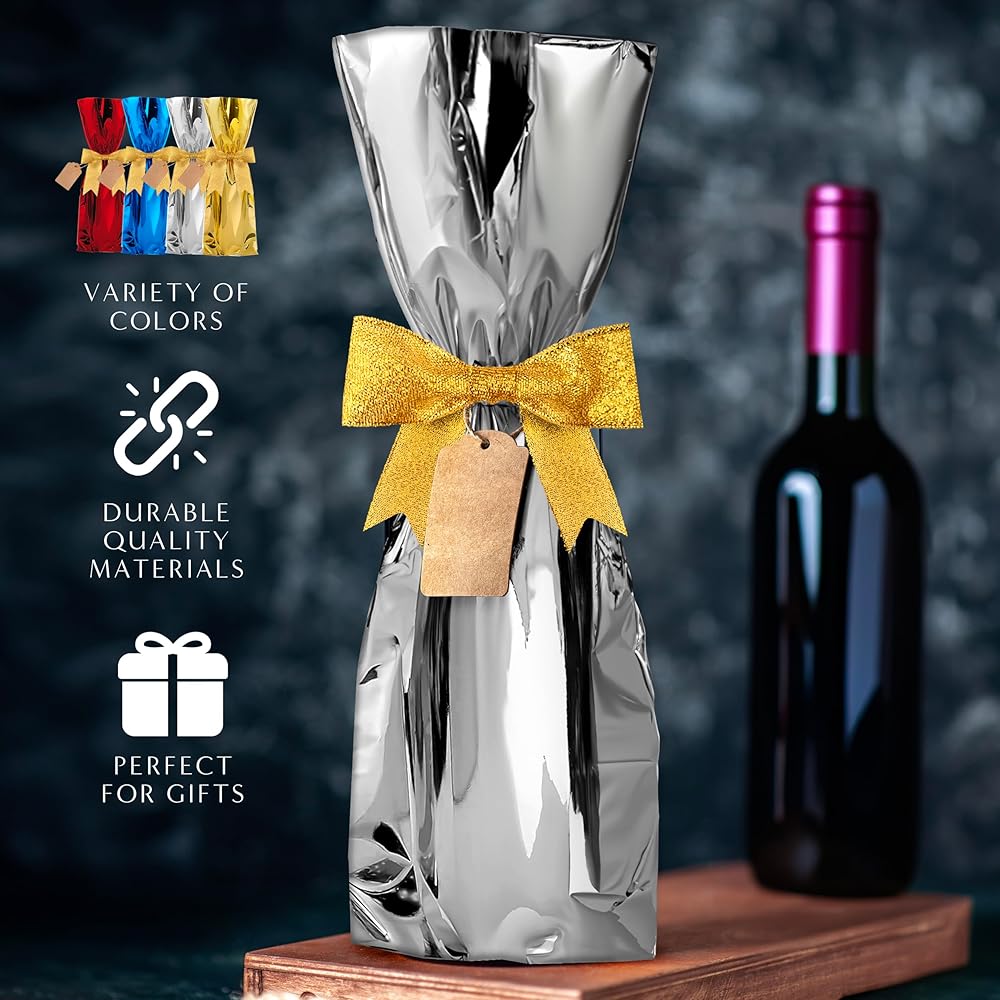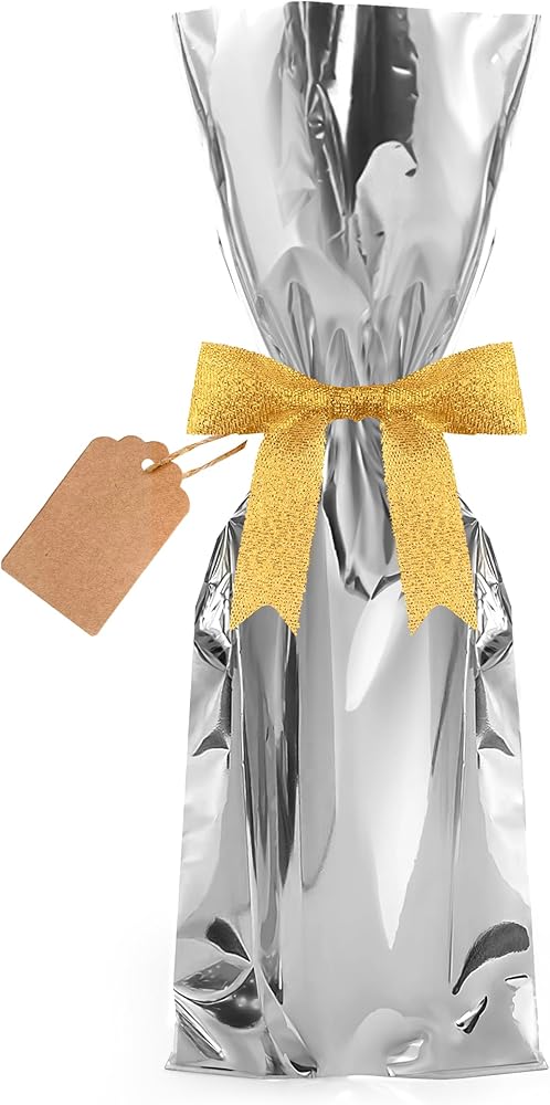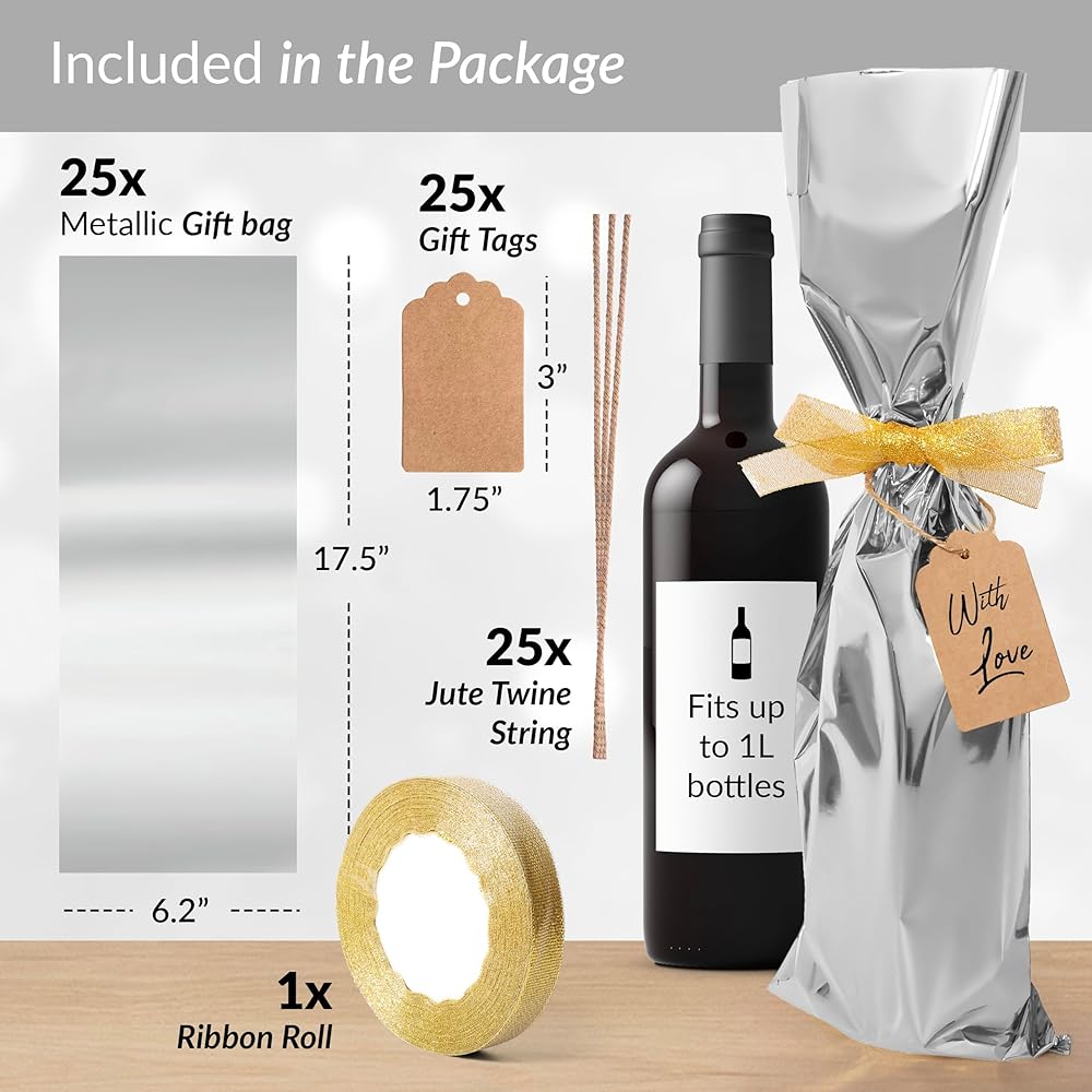 حل سهل وبأسعار معقولة: مع 25 قطعة في كل عبوة بما في ذلك الشريط والعلامات، توفر حقائبنا حلاً اقتصاديًا لا يؤثر على الجودة. توفر أغلفة هدايا الزجاجات لدينا القدرة على تحمل التكاليف والجودة العالية، مما يجعل اختيارك سهلاً
