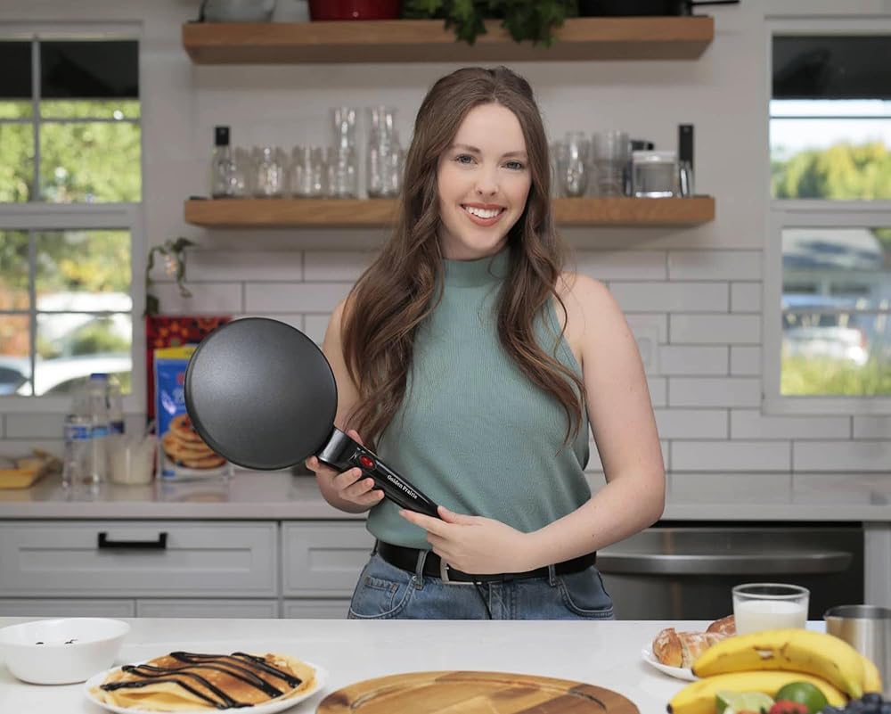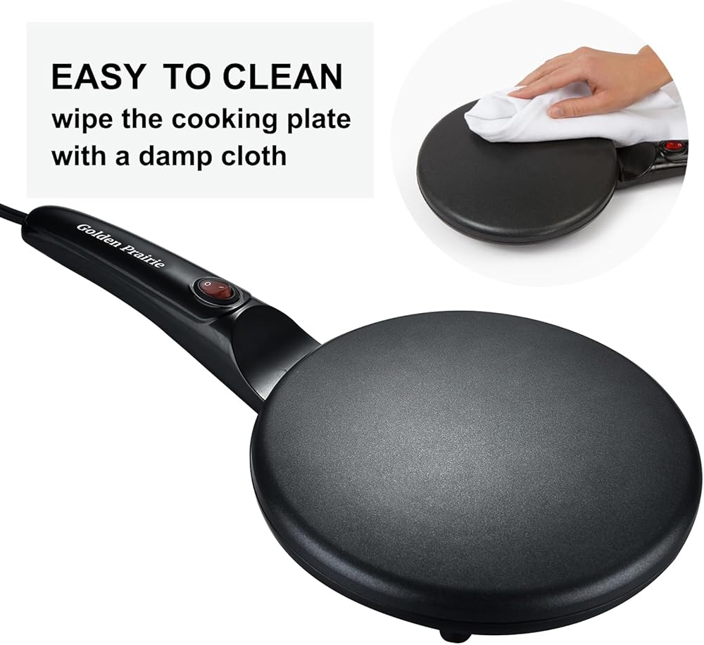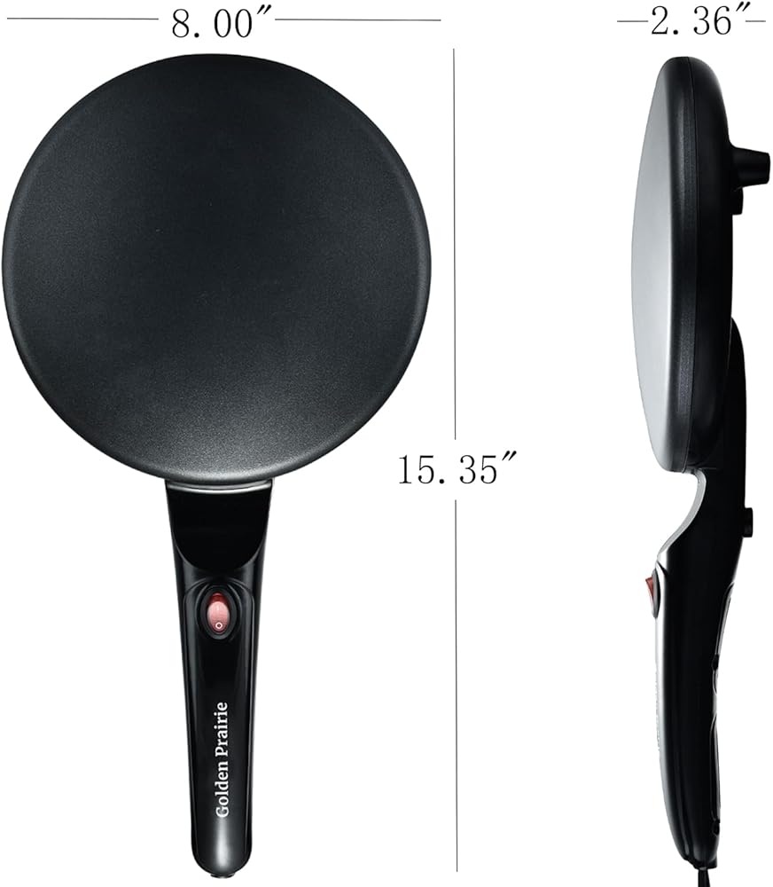 صانعة كريب الشواية مقاس 8 بوصات من جولدن بريري، مقلاة كريب كهربائية غير لاصقة، تحكم تلقائي في الحرارة، مقبض طويل محمول، مع وعاء للخليط، صانع إفطار محمول للفطائر، بلينتز، تشاباتي، تورتيلا