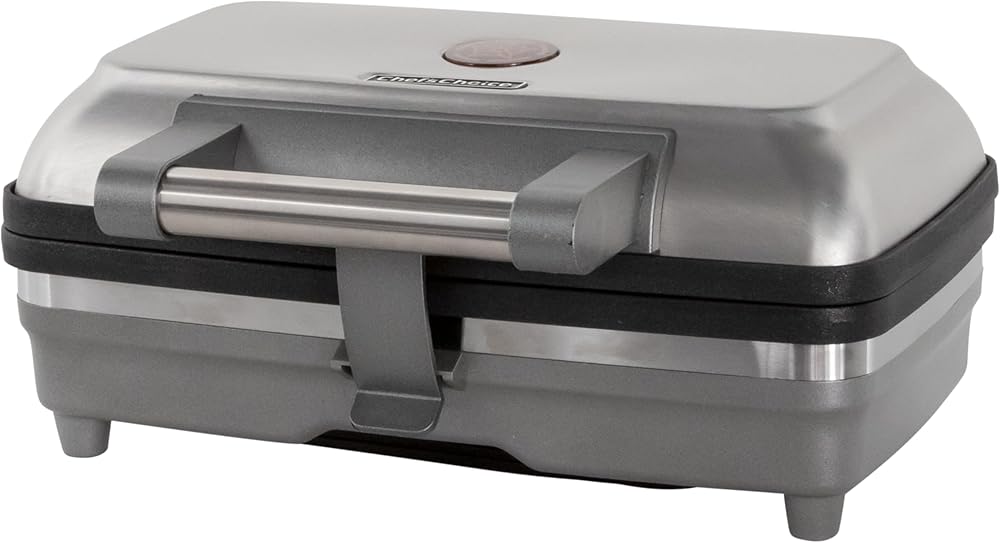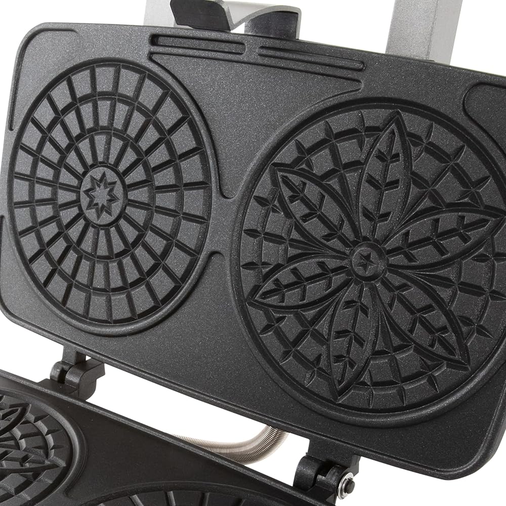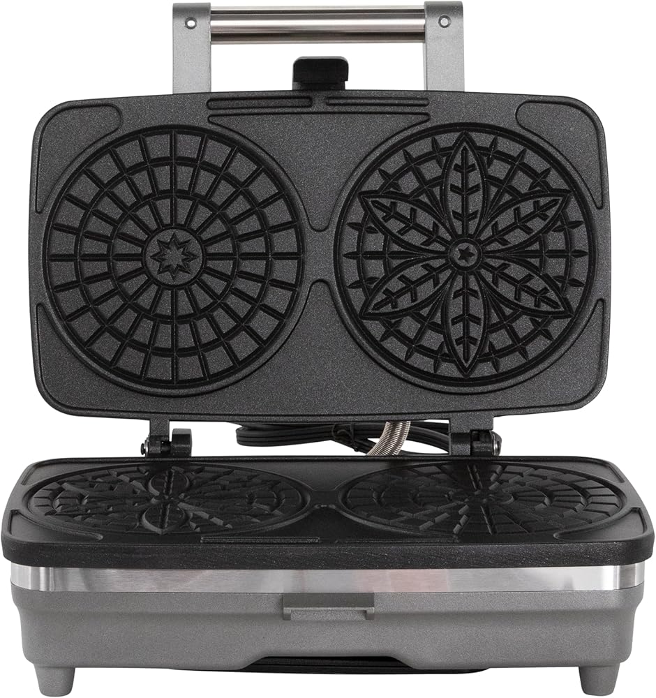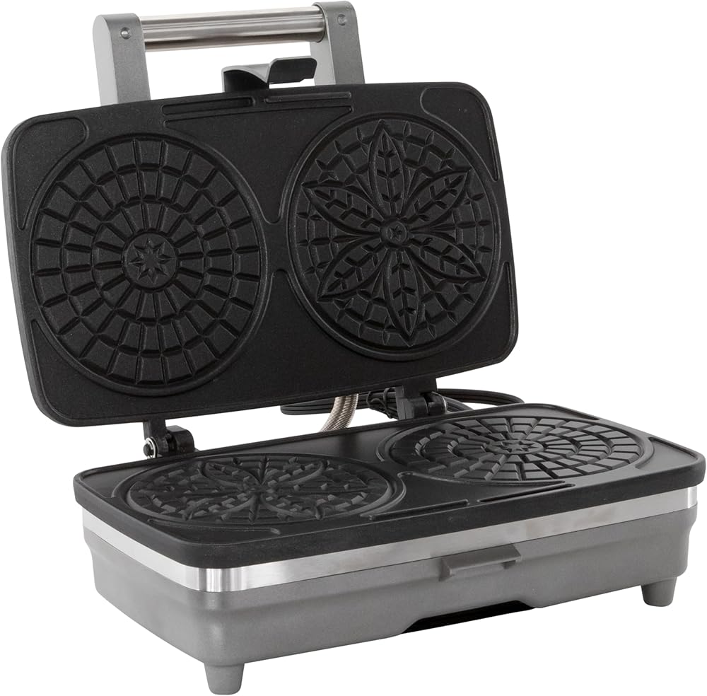 صانعة البيتزا من Chef'sChoice تصنع قطعتين من البسكويت بحجم 4.75 بوصة في 30 ثانية، مكواة غير لاصقة مع قالبين تتميز باستعادة درجة الحرارة بشكل فوري، مثالية للكانولي، 900 واط، فضي