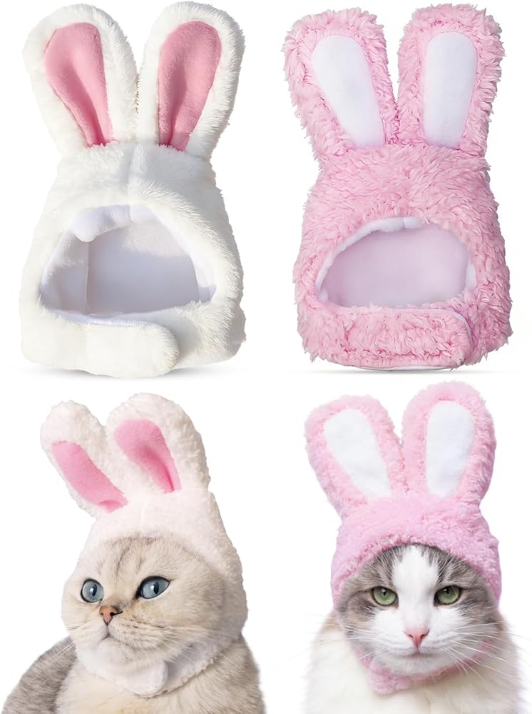 • Package included: 2 Pack white and pink bunny ear for Cat, designed with cute bunny ears wrap the cat's head, nice Easter pet costume for your cat.