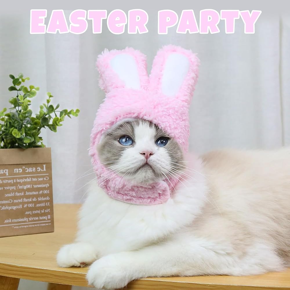 2PCS Bunny Ears for Cat, Plush Rabbit Hat with Ears for Cats & Small Dogs, Cute Easter Party Costume Pet Headwear Accessory