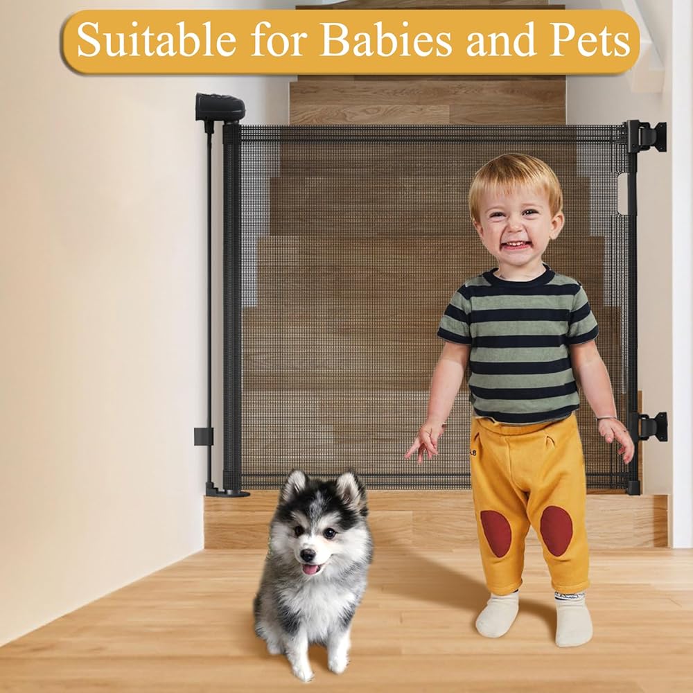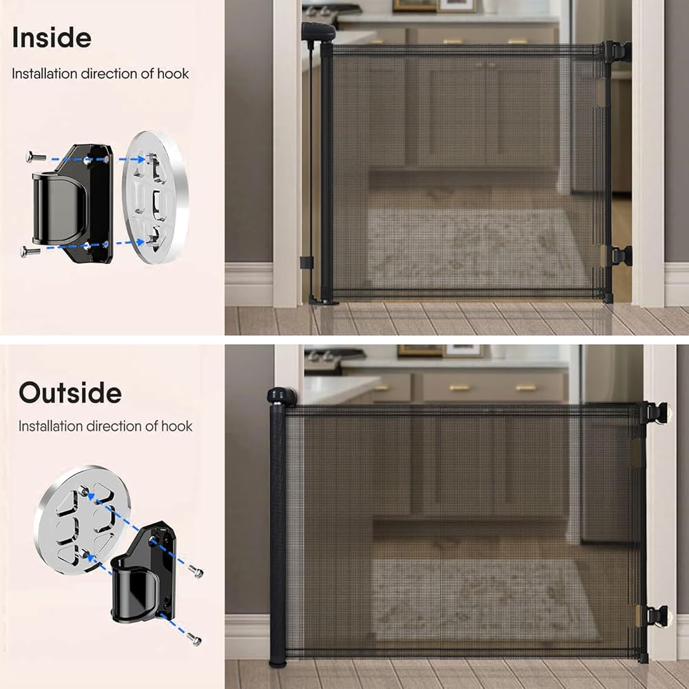 【بوابة قابلة للسحب بعرض إضافي 120 بوصة 】 يبلغ طول بوابة الأطفال القابلة للسحب الطويلة جدًا 41.33 بوصة وتناسب الفتحات من 0 إلى 120 بوصة. يمكن سحب بوابة الكلاب الشبكية بالكامل عند عدم استخدامها، مما يوفر لك المساحة.