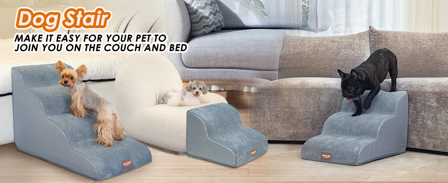 سلالم مريحة للحيوانات الأليفة - تم تصميم درج الكلاب الإسفنجي هذا على حافة السرير أو الأريكة أو أي أثاث آخر، حتى يتمكن حيوانك الأليف من التسلق لأعلى ولأسفل بشكل مريح. يوفر المنحدر اللطيف لهذا المنحدر حلاً مثاليًا للتنقل للكلاب التي يصل وزنها إلى 50 رطلاً