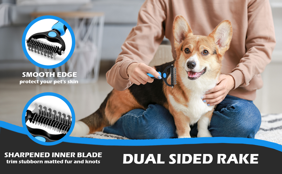 🐶【قطعتان من فرشاة إزالة الشعر】مشط للطبقة السفلية وفرشاة تنظيف على الوجهين. (1) فرشاة إزالة شعر الكلاب تجعل من السهل تقليم الشعر العنيد والمتشابك (2) فرشاة تنظيف الكلاب يمكن أن تساعد في تنظيف الطبقة السفلية الميتة والقشرة والغبار، بينما يعزز تدليك الجلد الدورة الدموية بشكل أفضل ويعزز بريق فراء الحيوانات الأليفة ذات الشعر الطويل.