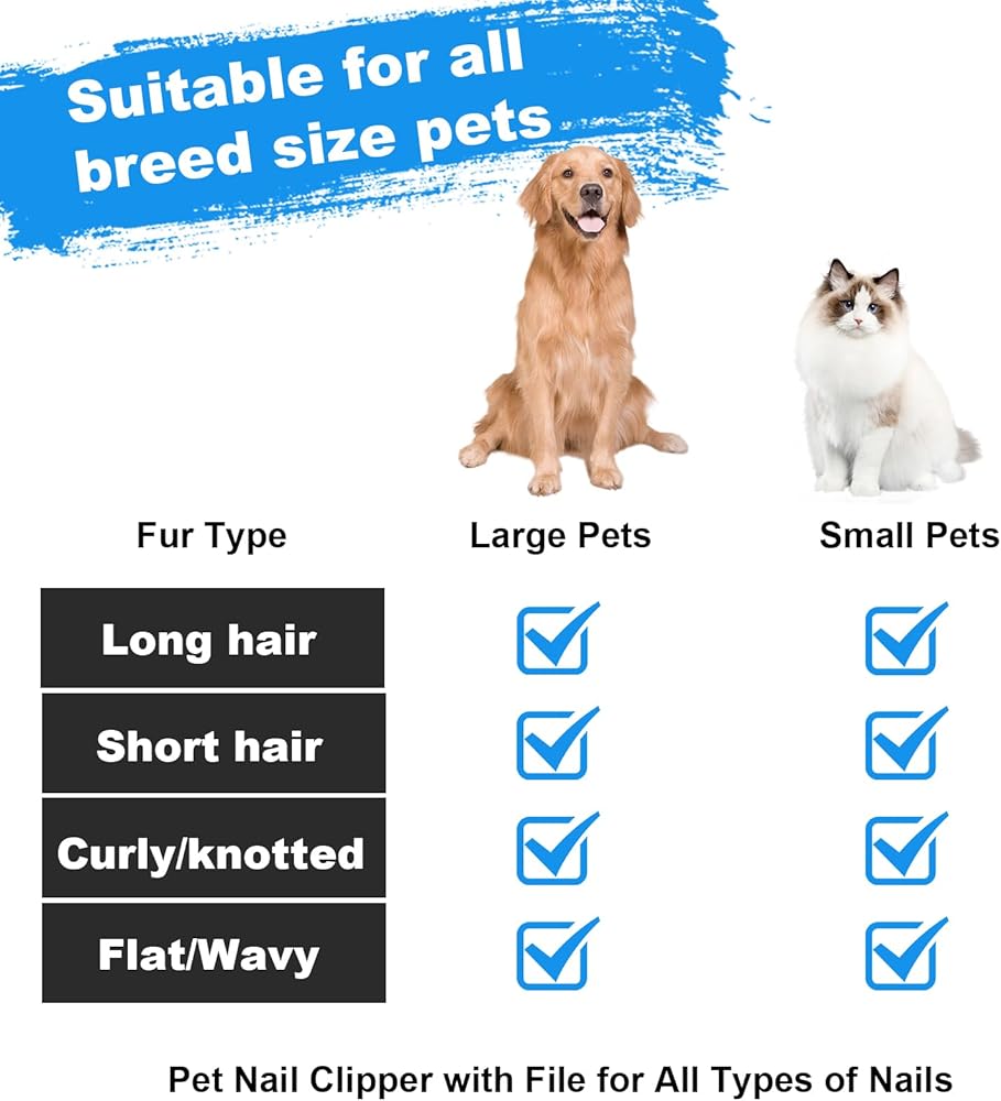 🐶【قطعتان من أدوات الأظافر】قصافة أظافر ومبرد أظافر. يمكن لقص أظافر الكلاب هذا تقليم الأظافر السميكة للكلاب الصغيرة والمتوسطة والكبيرة بسهولة. توجد سدادة أمان لمنع التشذيب المفرط وتلف خط دم الظفر. بعد القص، يمكنك استخدام مبرد الأظافر لتلميع أظافر كلبك