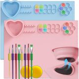 svartur حصيرة حرفية من السيليكون مع كوب قابل للفصل، مقاس 20 × 16 بوصة، حصيرة طلاء من السيليكون للأطفال مع فرشاة طلاء، حصيرة فنية من السيليكون للمبدع، حصيرة سيليكون مصبوبة من الراتنج للغراء الساخن، عبوة من قطعتين، وردي وأزرق