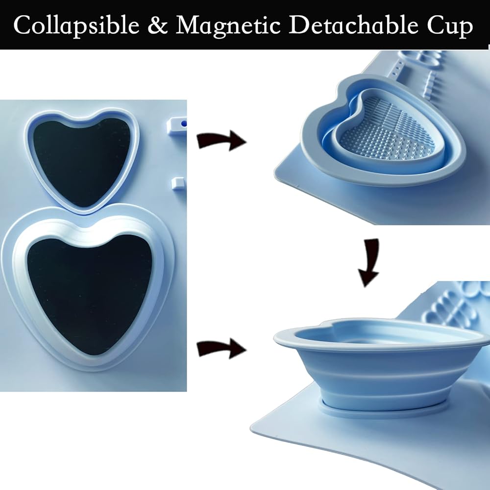 【ترقية تصميم الكوب القابل للفصل】: بساط السيليكون على شكل قلب مع كوب قابل للإزالة، الكوب الموجود على بساط السيليكون ليس قابلاً للطي فحسب، بل يحتوي أيضًا على ورقة مغناطيسية في الجزء السفلي، لذلك يمكن فصله عندما يلتصق باللوحة. حصيرة، لم يكن من السهل أن تنقلب فوق الماء؛ كما أنه من السهل إخراجه لتغيير الماء عندما يتم فصله عن السجادة.