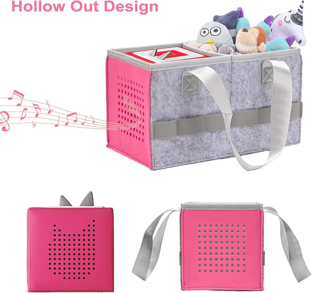【سعة كبيرة】الحجم 10.4*5.7*5.4 بوصة. هذه الحقيبة المنظمة مناسبة تمامًا لـ Toniebox وسماعات الرأس والشاحن وحوالي 30-40 Tonies Audio Character. أفضل هدية هي لأطفالك.