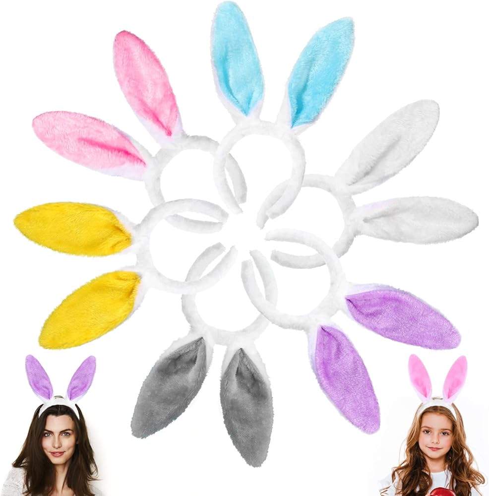 6 قطع من عصابة رأس YUJUN من القطيفة على شكل أذن أرنب، أربطة شعر لطيفة متعددة الألوان لعيد الفصح من أجل لعبة أطفال عيد الفصح وهدايا حفلات عيد الفصح