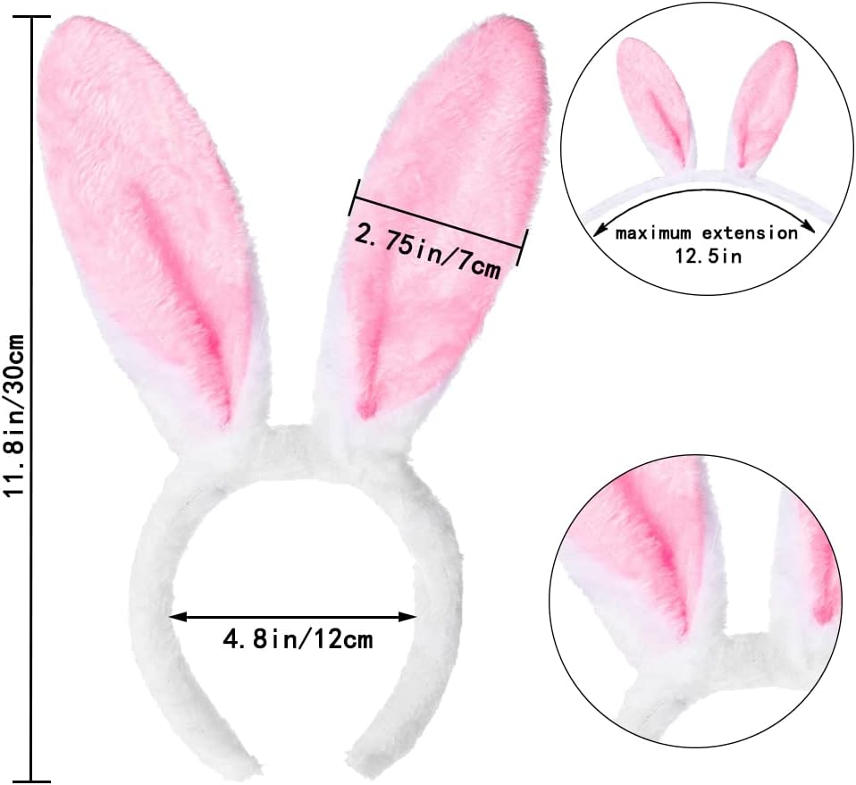 • حجم قابل للانحناء: طول كل أذن حوالي 6.7 بوصة، وعرض عصابة الرأس حوالي 5 بوصات. يمكن تعديل طول آذان الأرنب الربيعية إلى 12.5 بوصة. مناسبة للبالغين والأطفال. يمكنك ثنيها وتغيير حجمها ارتديها. بالإضافة إلى ذلك، يمكن ثني آذان الأرنب وطيها حسب الرغبة.
