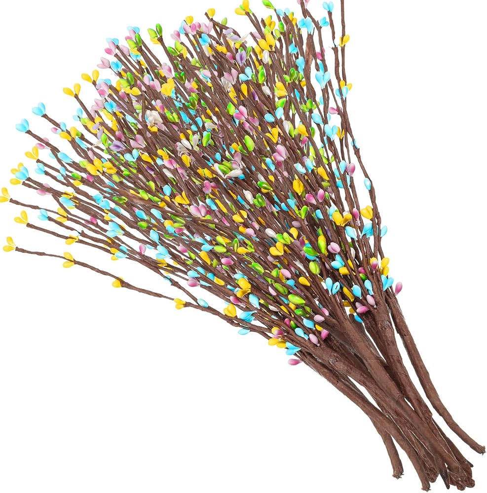 الكمية: سوف تحصل على 12 عبوة من قطع زهور عيد الفصح، كل قطعة تتكون من 9 فروع رفيعة من التوت مغلفة بسلك، ستضيف لمسة من سحر الربيع إلى منزلك مع رذاذ التوت الملون والانحناء والشكل كما يحلو لك.