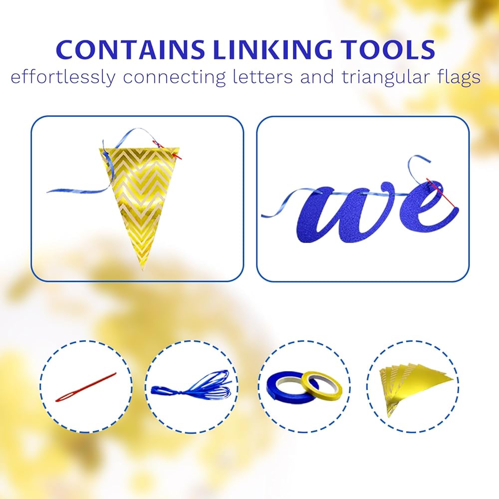 • 🎈أدوات يدوية مريحة: تأتي ديكورات نحن نقدر لك مع أدوات توصيل، مما يجعل من السهل عليك ربط جميع الحروف والأعلام المثلثة، مما يبسط عملية DIY.