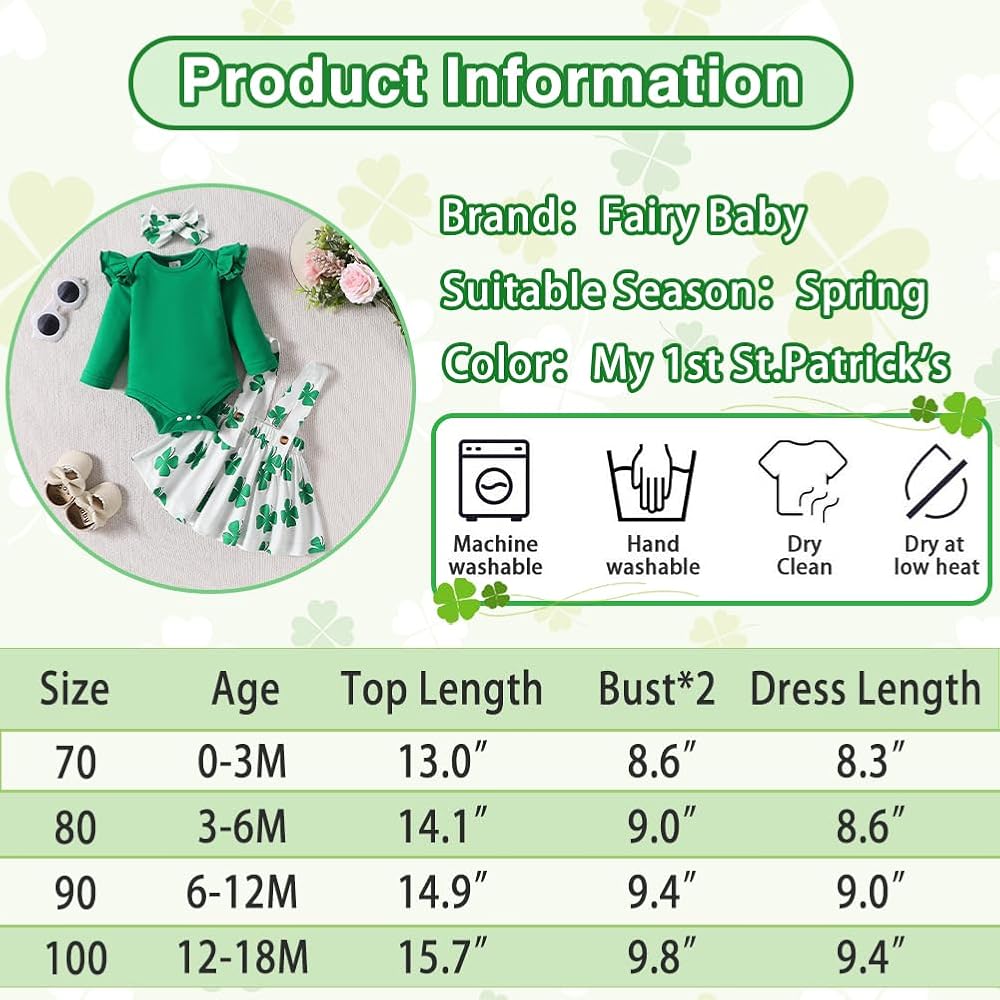 🍀【المقاس والمناسبة】مناسبة للفتيات حديثي الولادة 0-3 أشهر، 3-6 أشهر، 6-12 شهرًا، 12-18 شهرًا. مثالي لعيد القديس باتريك لطفلك، والارتداء اليومي، والتقاط الصور، وموكب الاحتفال. أفضل هدية لعيد القديس باتريك لعام 2024 لطفلك الصغير.